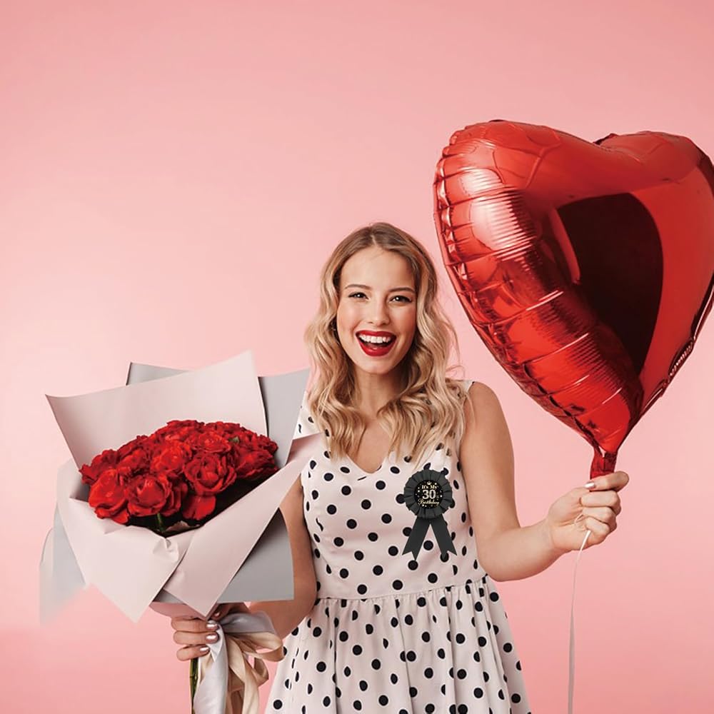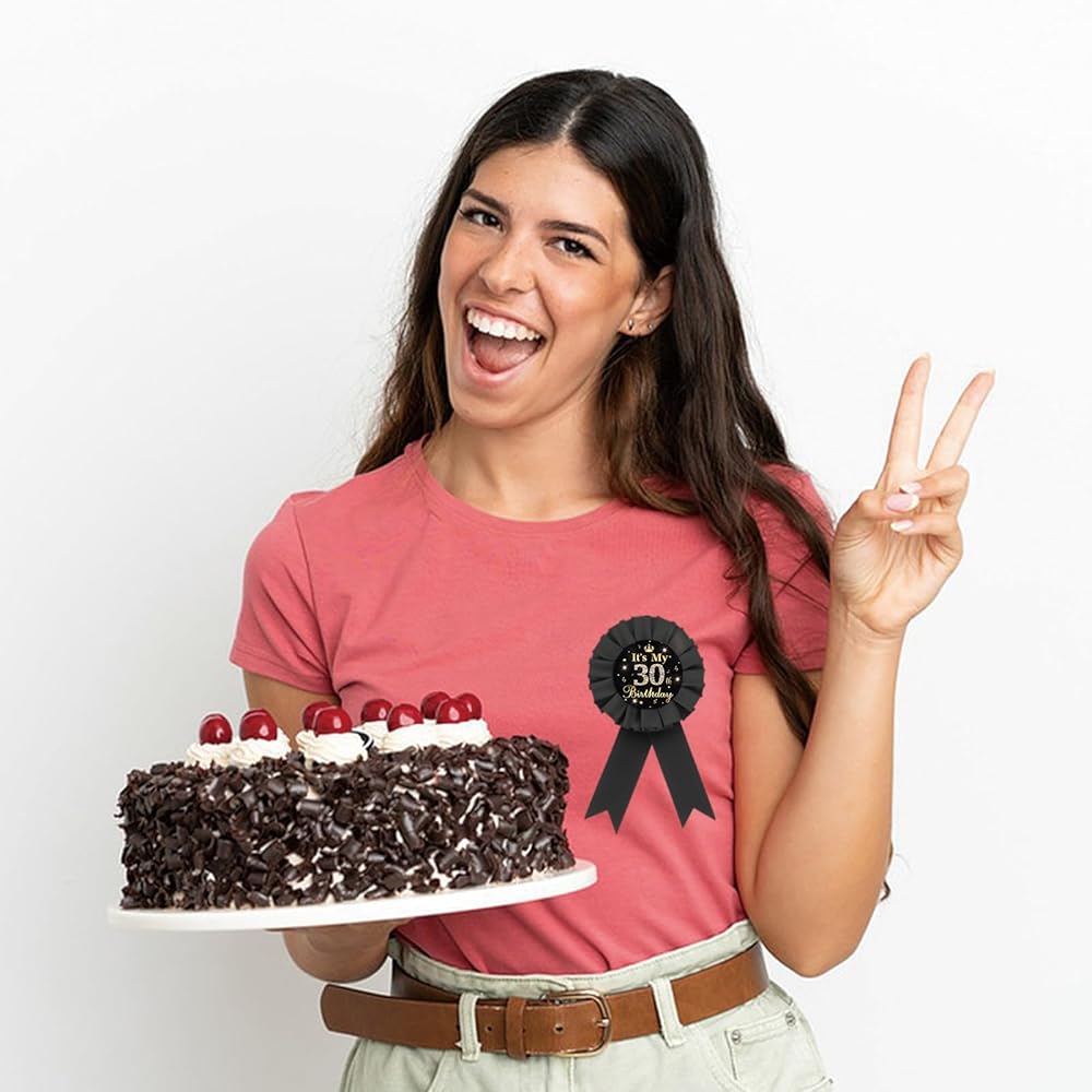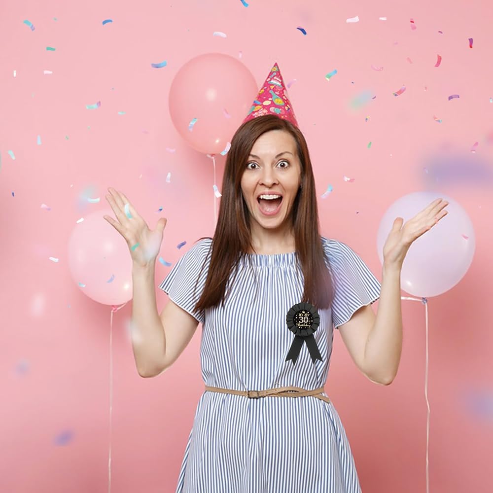 • 🥂【Black 30th Birthday Button for Women】Ideal for your birthday party. Light up your party by adding a exquisite rosette button pin. And giving you and your friends an unforgettable memory on this special day.