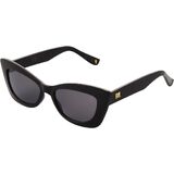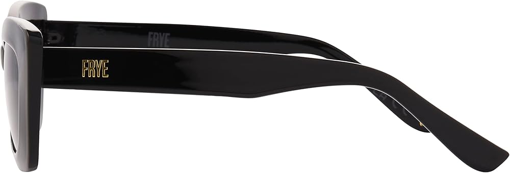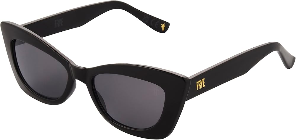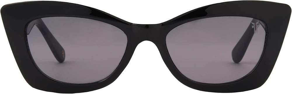 We're bringing back retro fashion trends with the Frye Ladies Ainsley sunglasses. They have shiny black, cateye frames made entirely with recycled plastic. The smoke lenses are scratch and impact resistant, and provide 100% UVA/UVB lens protection from the sun's harmful rays.