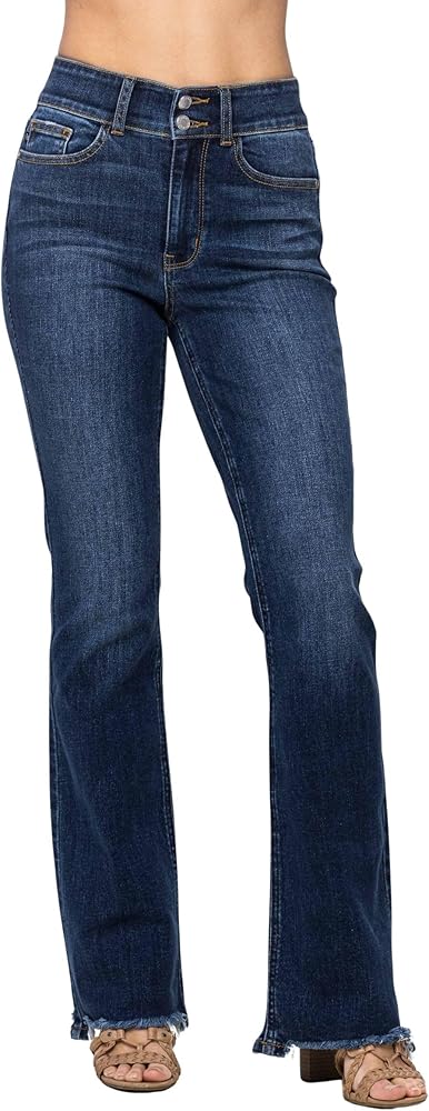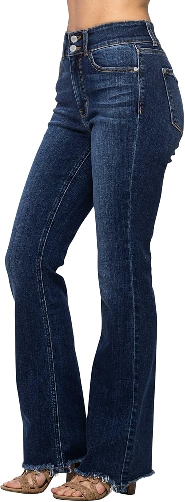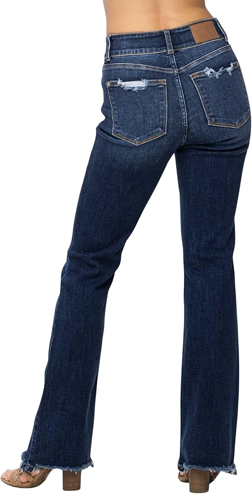 The bootcut leg elongates the body and balances the frayed edges, creating a harmonious look that complements any shoe choice, from boots to sneakers. Embrace a chic, retro vibe with the Judy Blue Women's High-Waisted Vintage Frayed Hem Bootcut Jeans, and enjoy a versatile wardrobe staple that brings together classic style and contemporary comfort.