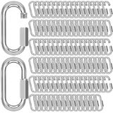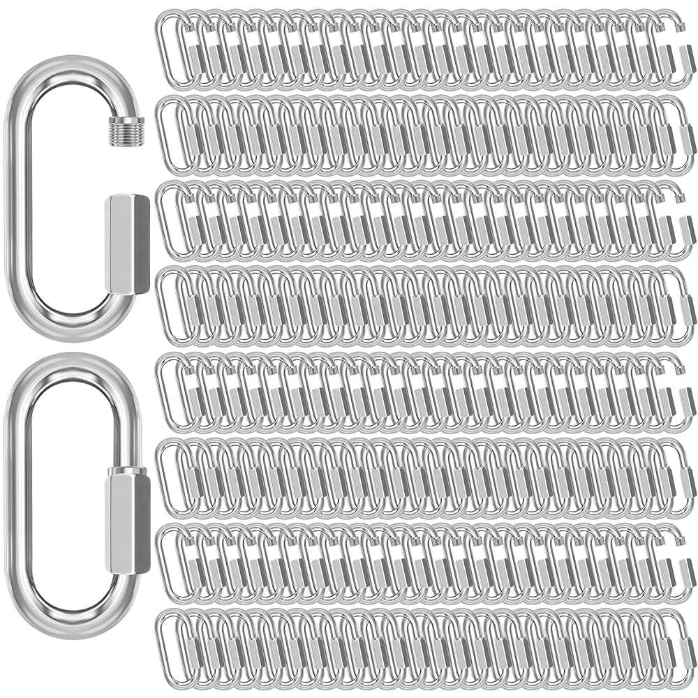 【المواصفات: سوف تحصل على 50 قطعة من وصلات السلسلة السريعة M6. الطول الإجمالي: 2.3 بوصة، العرض: 1.1 بوصة، السُمك: 1/4 بوصة، عرض الفتح الأقصى: 0.3 بوصة. حلقات القفل مصنوعة من الفولاذ المجلفن المعالج بالحرارة، وهي مقاومة للعوامل الجوية والتعفن والصدأ. السطح مصقول وخالي من الاختباء لتجنب إيذاء يديك.