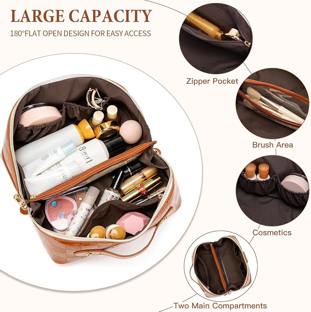 تصميم واسع: بقياس 9.44 × 5.11 × 5.11 بوصة، تتميز حقيبة المكياج هذه بحجرتين رئيسيتين، وجيبين جانبيين صغيرين مطاطيين، وجيب داخلي كبير بسحاب، وجيب ثابت بسحاب من مادة TPU في المنتصف. تصميمه متعدد الوظائف يلبي جميع احتياجات المكياج والعناية بالبشرة وأدوات الزينة، مما يجعله مثاليًا للاستخدام اليومي والسفر.
