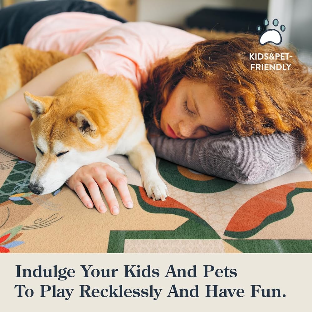 [سجادة صديقة للأطفال والحيوانات الأليفة] - مصنوعة من مواد صديقة للبشرة، سجادة بمساحة 8 × 10 مريحة وآمنة للأطفال للعب عليها. تصميم منخفض الوبر يقاوم المضغ والخدش من قبل الحيوانات الأليفة الفضولية، ولن تتمزق الكفوف أو تلتصق بالحواف بسهولة.