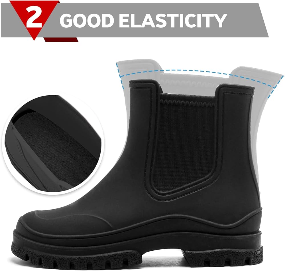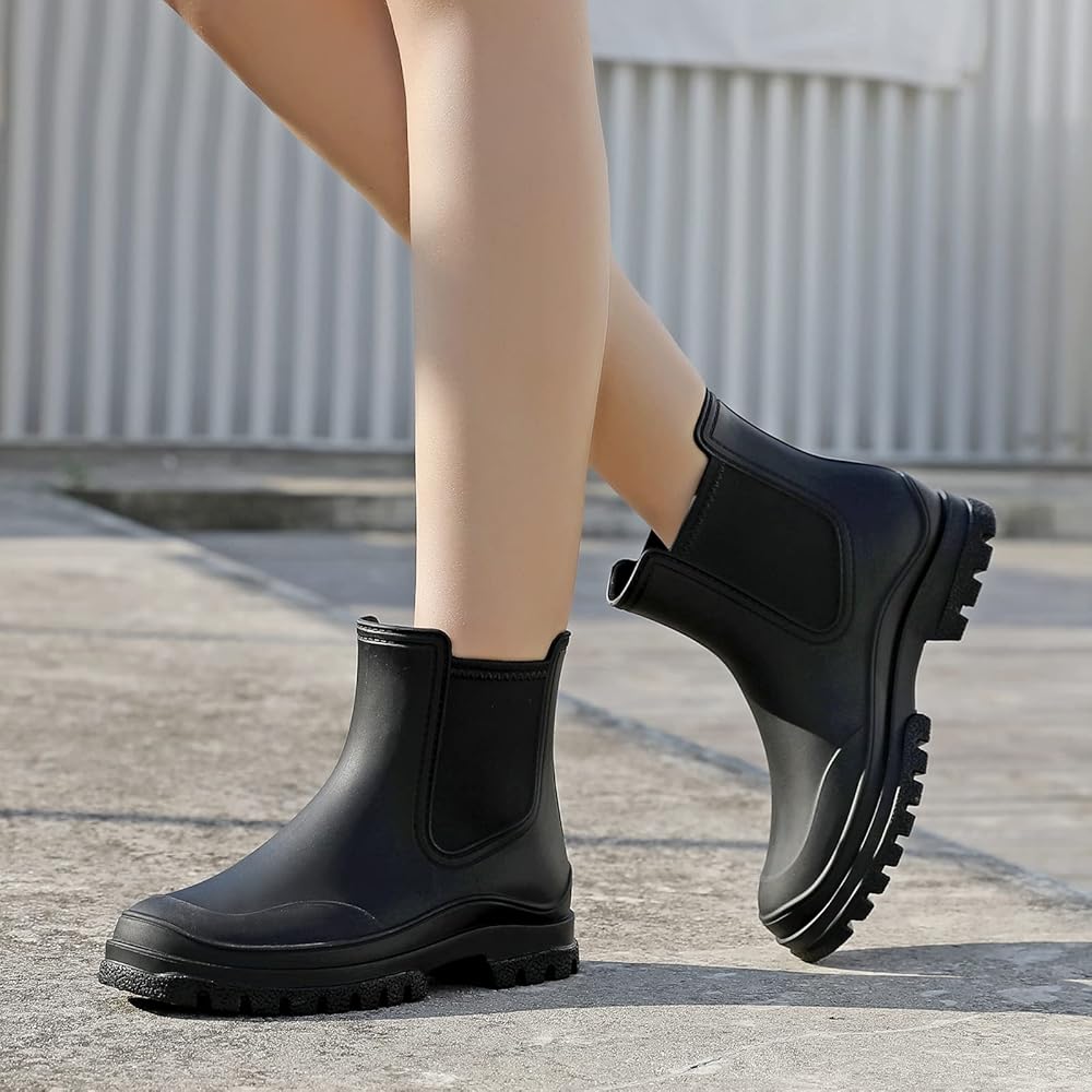 Scene: The minimalist and stylish matte women's rain boots easily match with any sportswear or casual wear in your wardrobe, and the sole height is very flattering to the leg shape so that you will not get tired even after a day of walking, perfect for shopping, hiking, traveling, camping, walking the dog or all outdoor activities.