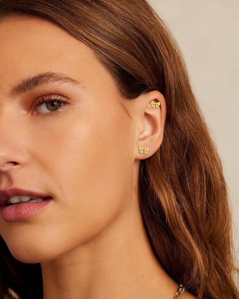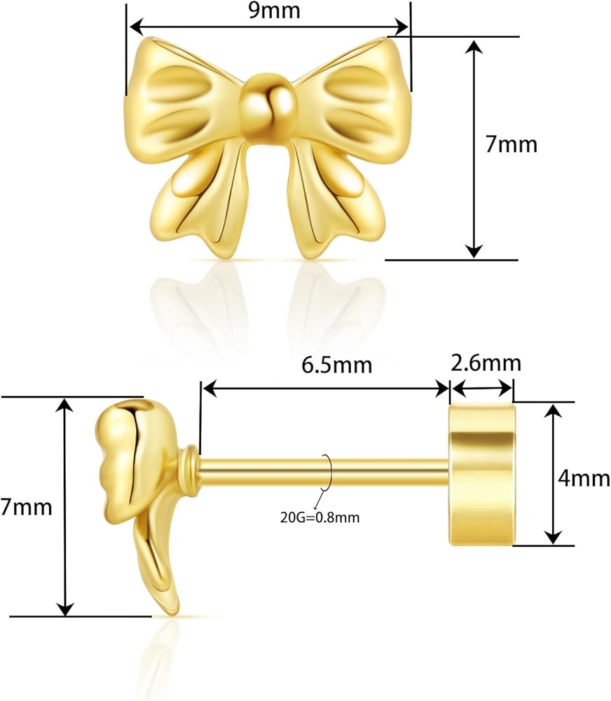 ❤أقراط على شكل فيونكة خلفية مسطحة بدون خيوط - أقراط على شكل قوس خلفي❤ تستخدم هذه الأقراط ذات القوس المسطح مقاس 7 × 9 مم تصميمًا مسطحًا للخلف، وغير مفككة، وأسهل في الارتداء والخلع. تعتبر هذه الأقراط ذات الظهر المسطح آمنة لجميع الأعمار. على عكس الأنواع الأخرى من الأقراط التي تحتوي على عمود مع أقراط خلفية لولبية أو أقراط خلفية على شكل فراشة أو ظهر احتكاك، فإن الأقراط الخلفية المسطحة بدون خيوط لها ظهر مسطح وغير لولبي يدفع إلى عمود القرط ولن يضغط الجزء الخلفي من الرأس.