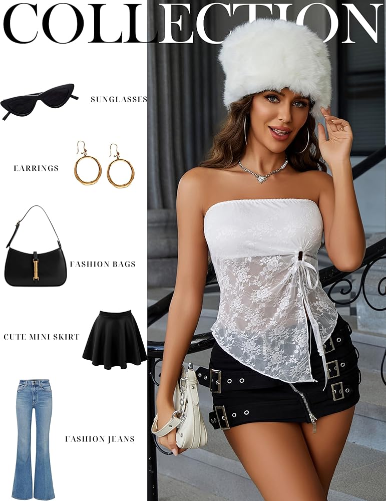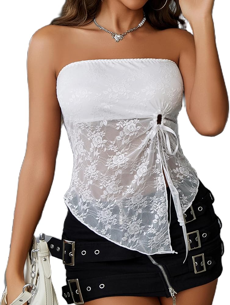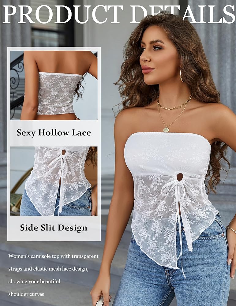 النمط: قمصان قصيرة للسيدات، قمصان قصيرة كامي للنساء، ملابس الخروج، قمصان بدون أكمام y2k، حمالات دانتيل للنساء، قميص قصير أنبوبي من الدانتيل، قميص قصير لطيف، قمصان أنبوبية رفيعة، ملابس رائعة للنساء