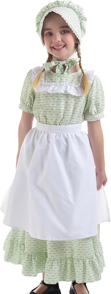 • تصميم استعماري أصيل مستوحى من "Little House on the Prairie": سيشعر طفلك بالانغماس في العصر الرائد مع زي يعكس النمط الأيقوني. مثالي لمحبي زي Laura Ingalls Wilder التنكري
