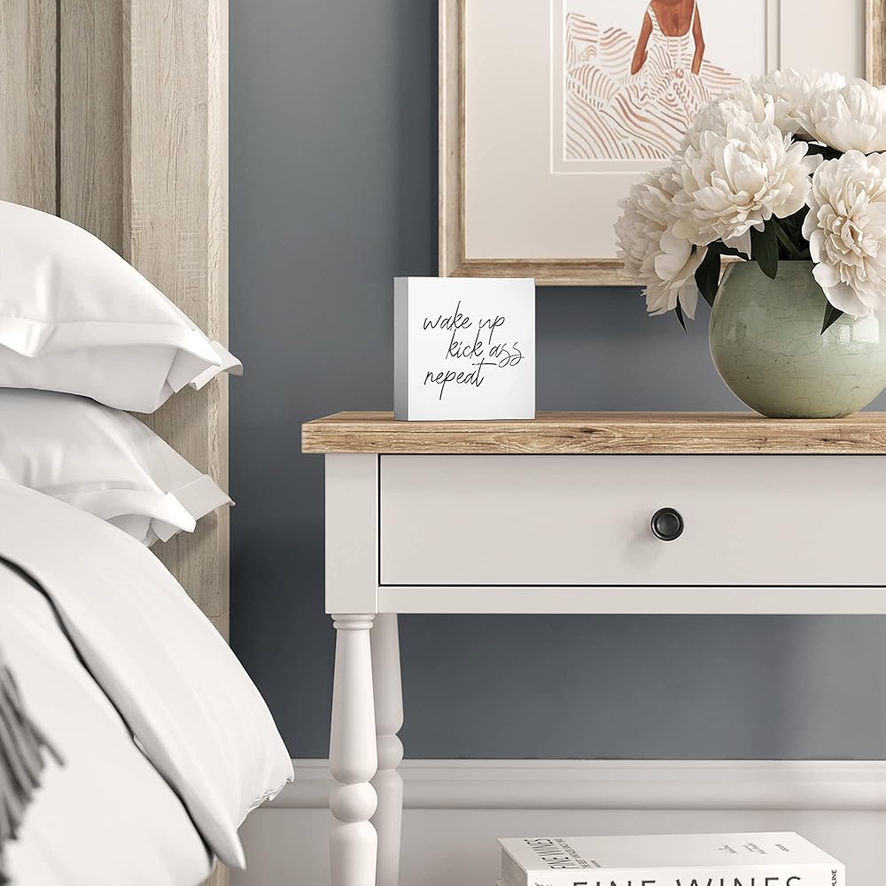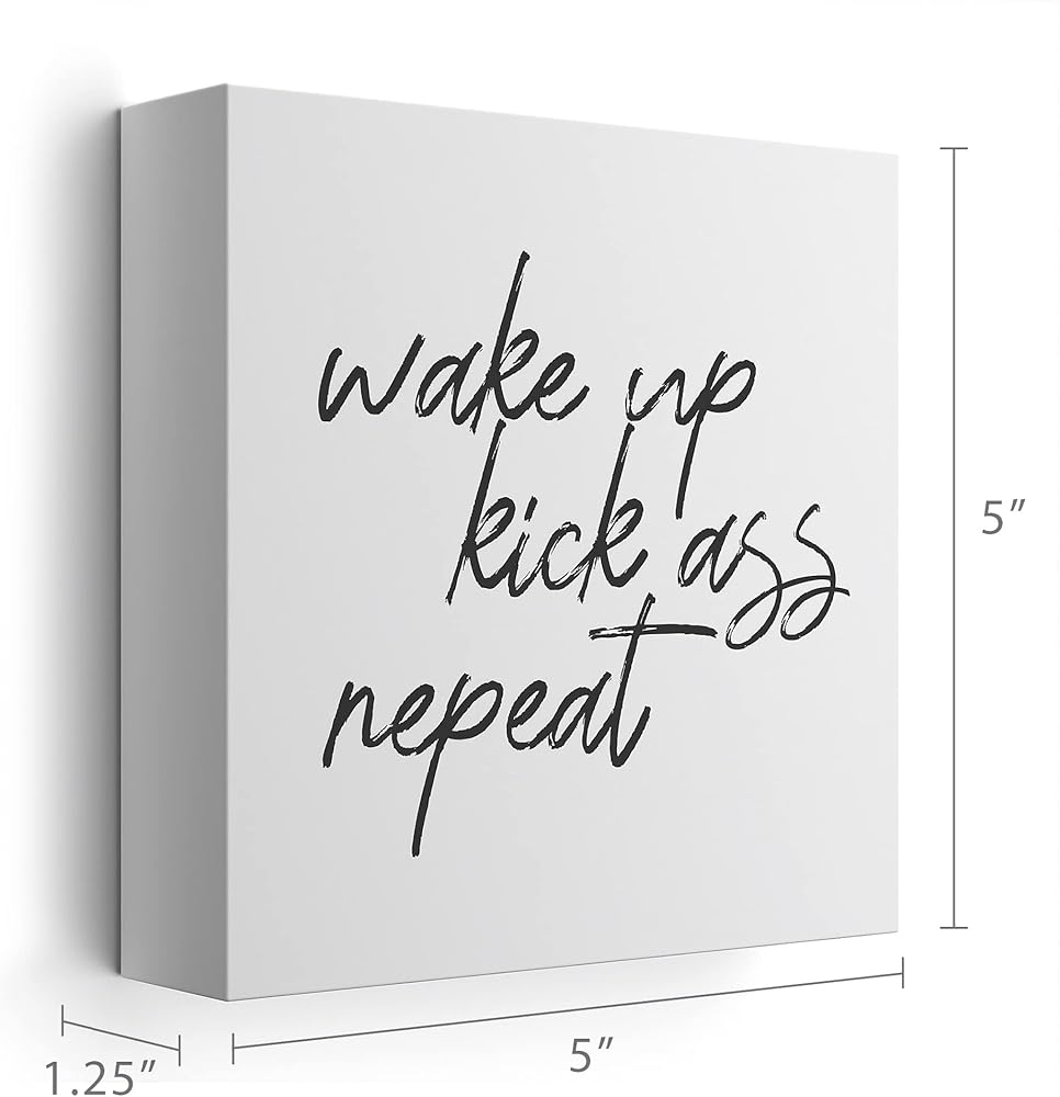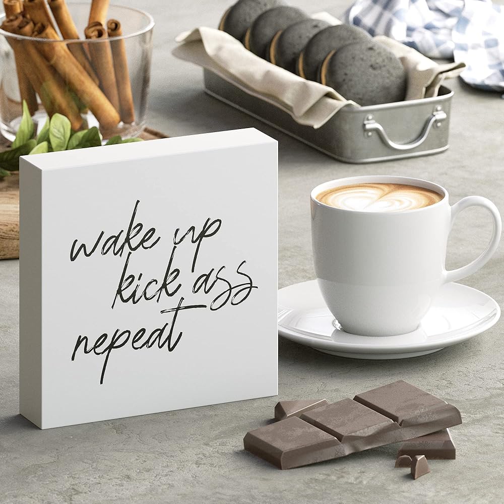 Wooden Box Sign Quotes Wall Decor - Our 'Wake Up Kick Ass' wooden sign for home decor is a positive quotes wall decor sign. Decorative primitive decor wall art plaque to add character to any living, office space or bathroom shelf decor.
