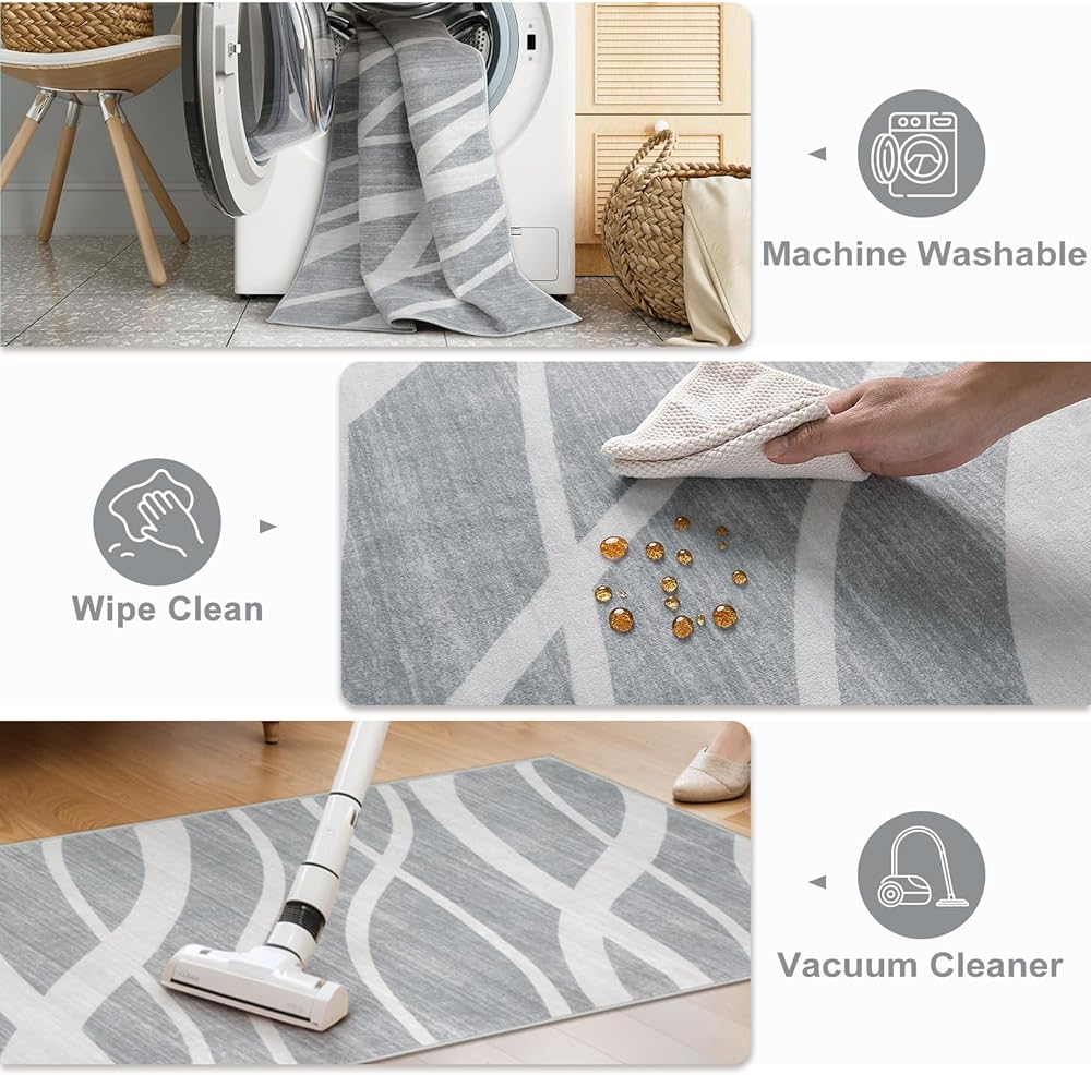 سطح ناعم ومريح: مفرش السجاد القابل للغسل مصنوع من ألياف الصوف الصناعي. فهو يتميز بملمس لطيف على البشرة مثل المشي على السحابة. عندما يلعب أطفالك وحيواناتك الأليفة بأقدام حافية، سيشعرون بالاسترخاء والدفء حقًا