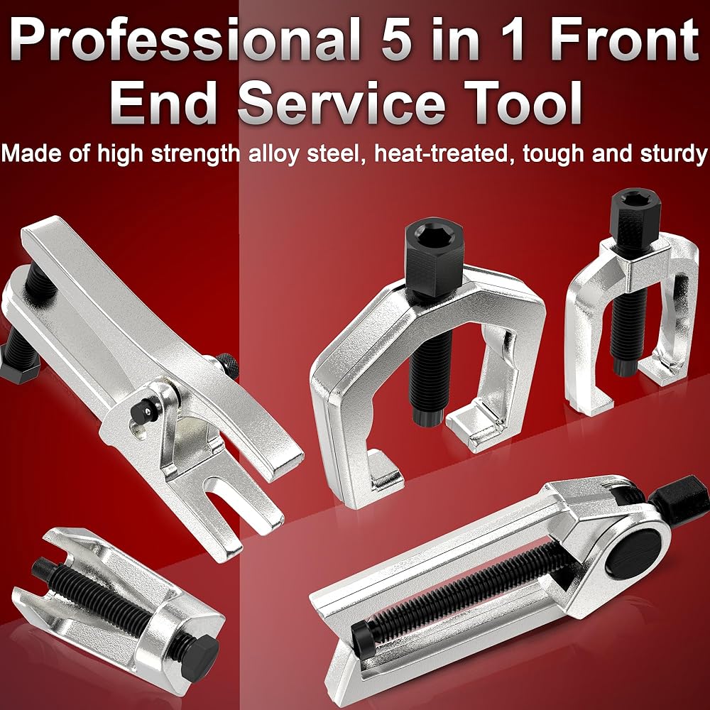 مجموعة أدوات خدمة الواجهة الأمامية مكونة من 5 قطع، فاصل وصلة كروية، أداة سحب ذراع بيتمان، أداة نهاية قضيب التعادل لمجموعة ضغط وصلة الكرة، مجموعة إزالة الفاصل