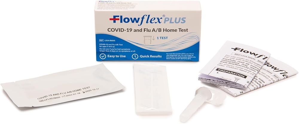 COVID & Flu Home Test by Flowflex Plus, Rapid Results in 15 Minutes, Trusted OTC COVID-19 & Flu A/B Testing Kit, FSA and HSA Eligible, Easy to Use & No Discomfort, 1 Pack 1 Test