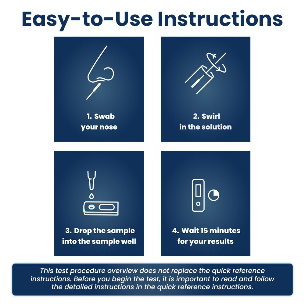 Easy to Use – All the components of the nasal swab test are included inside the box with step-by-step Instructions for Use in English and Spanish.