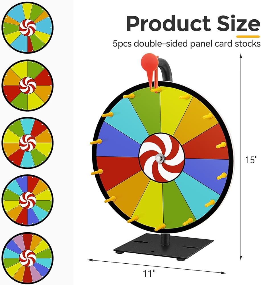 🌈【MULTIPLE PANEL OPTIONS】The roulette wheel comes with 5pcs double-sided panel card stocks, you can choose the suitable one according to your different usage needs and color preferences. One of the panels contains irregularly divided card stocks, it increases entertainment value, suspense and anticipation, and stimulates participants' interest and engagement.
