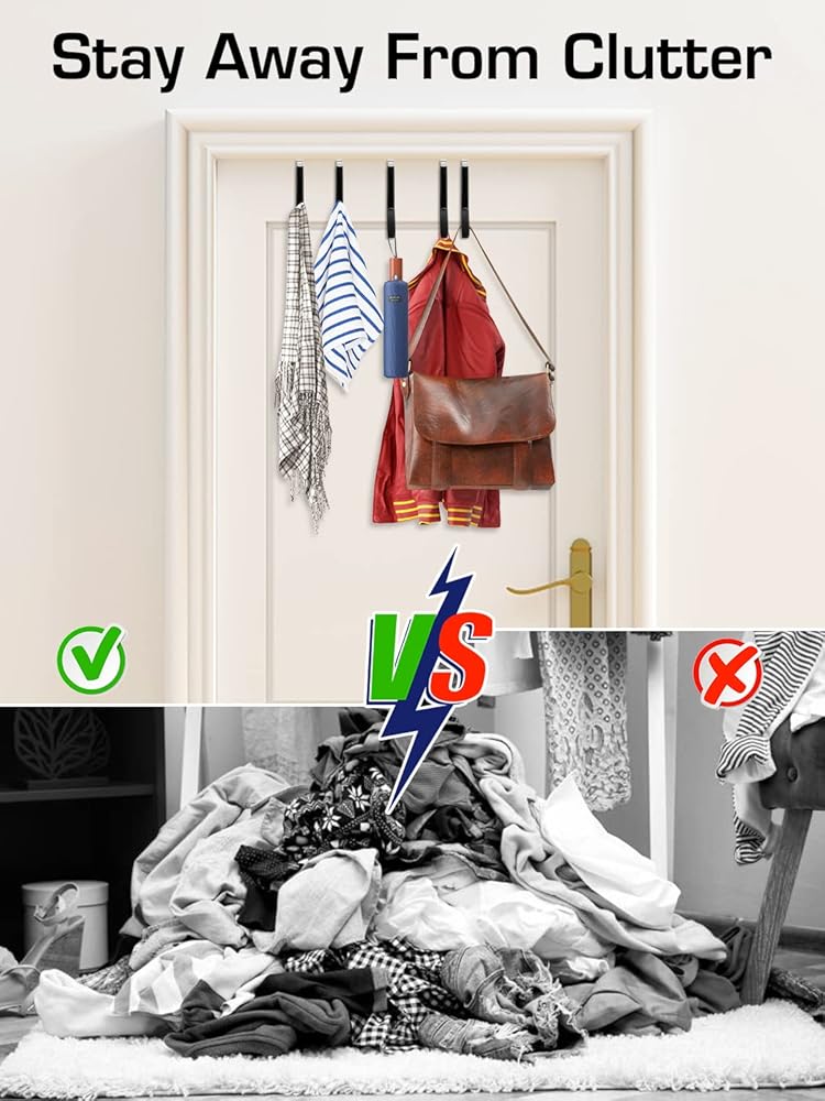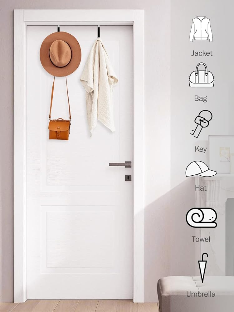 قل وداعًا للفوضى: حقق أقصى استفادة من مساحة الباب غير المستخدمة لتنظيم المعاطف الفوضوية والجينز والقبعات وحقائب الظهر والمظلات والمناشف وأردية الحمام وحقائب الأحذية والمزيد بسهولة. مثالية لغرفة المعيشة والحمام وغرفة النوم والمطبخ والمكتب.