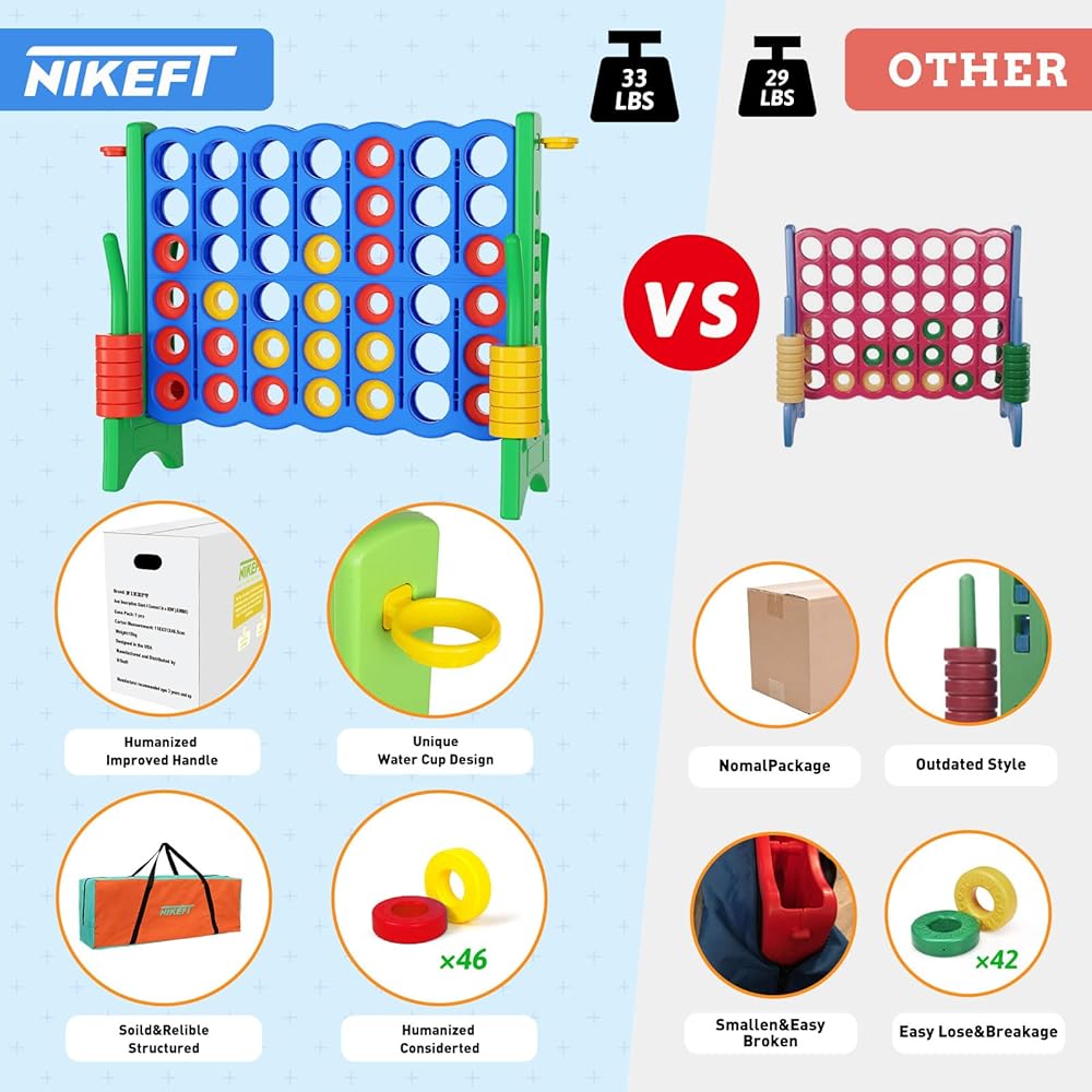 😘الأكبر هو الأفضل دائمًا: قم بتغيير حجم لعبتك لزيادة حجم متعتك! تزن لعبة N1KEFT الخارجية أو الداخلية 33 رطلاً ويبلغ قياسها 47.6 بوصة طولًا × 17.7 بوصة عرضًا × 46 بوصة ارتفاعًا عند تجميعها بالكامل. اجتمع حول أصدقائك للترفيه عن أي حشد أو عائلة .مصممة للأعمار من 3 إلى ما لا نهاية، إنها هدية مثيرة للاهتمام ومثيرة للغاية. لا يوجد محاولة معقدة أو محرجة لمعرفة أبدية القواعد أمام الجميع. بفضل ذلك، يمكن أن تكون ليالي الألعاب العائلية أكثر إثارة ومتعة.