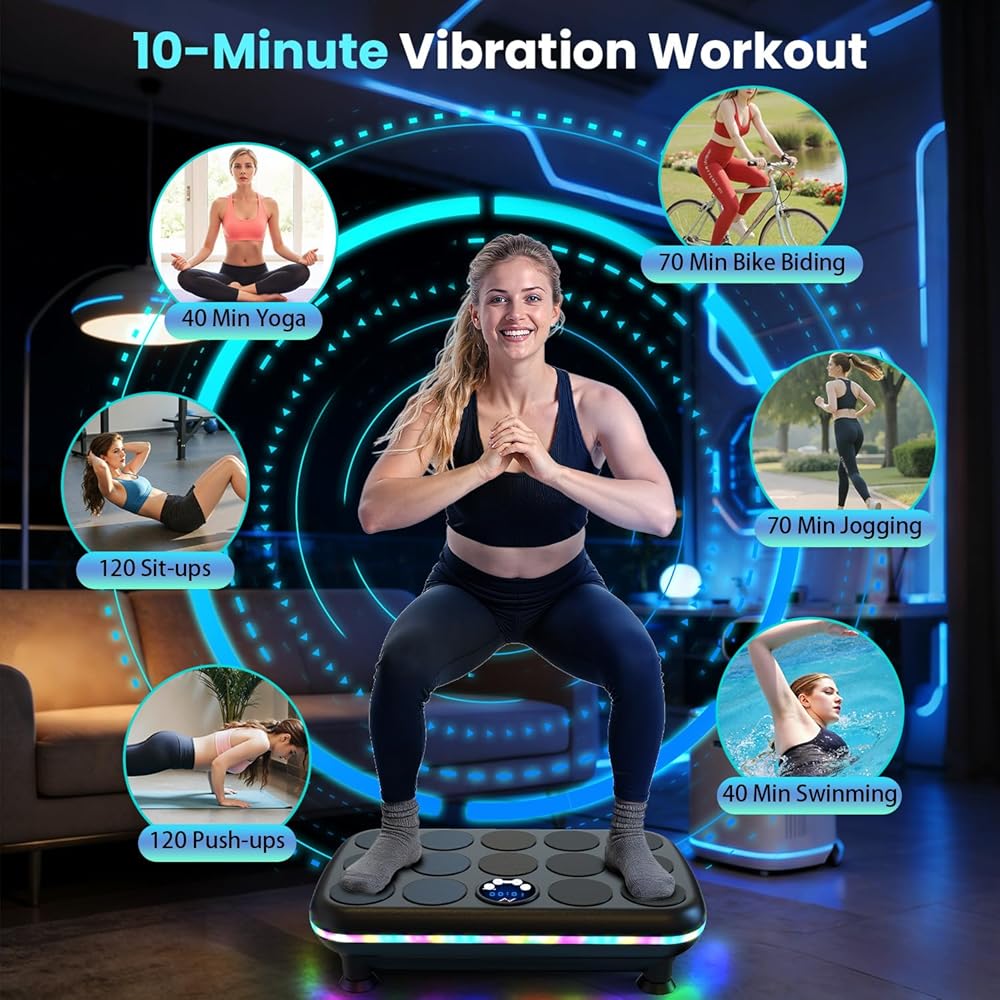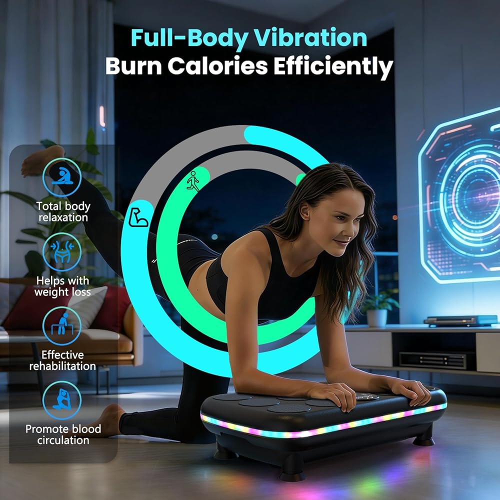Sturdy Construction: Built with a durable frame and non-slip surface, this vibration plate ensures stability and safety during your exercises.