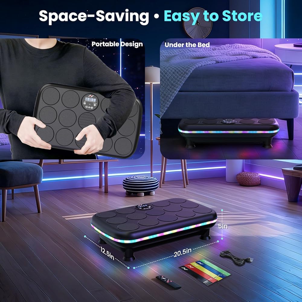 Compact Design: The vibration plate features a space-saving, portable design, making it easy to incorporate into any home gym or living space.