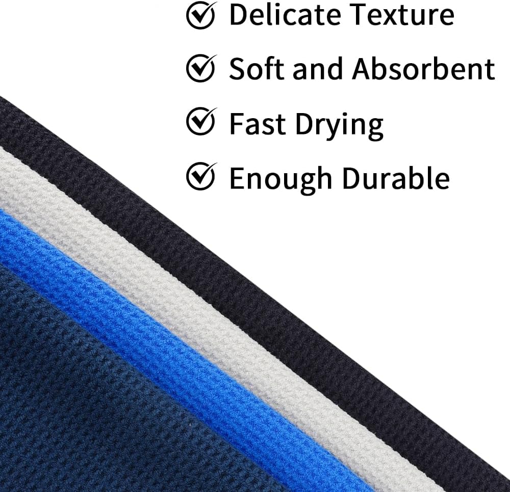 Material: The golf towel is made of microfibre woven fabric, soft material, absorbent, easy to dry and easy to clean