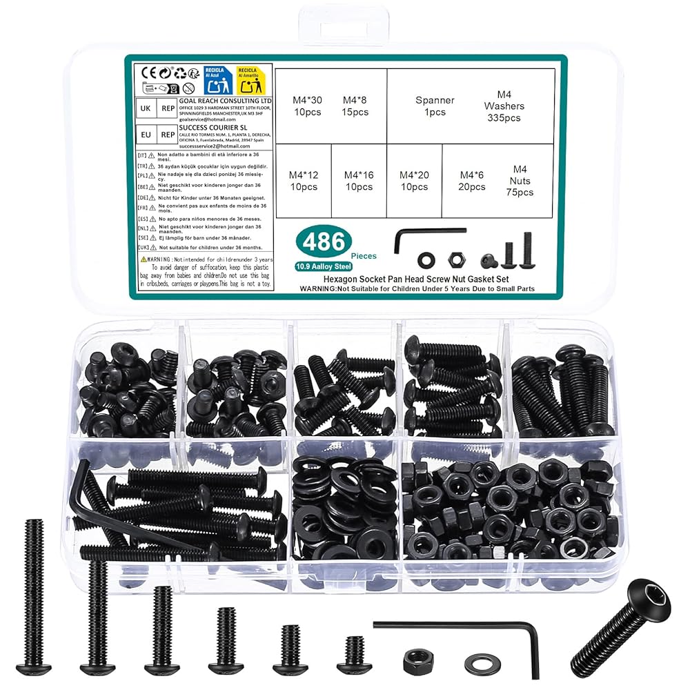 1. The M4 screws and nuts are made of high-quality 10.9 grade carbon steel, which has good corrosion resistance, high-temperature resistance, and wear resistance, the material is strong and durable.