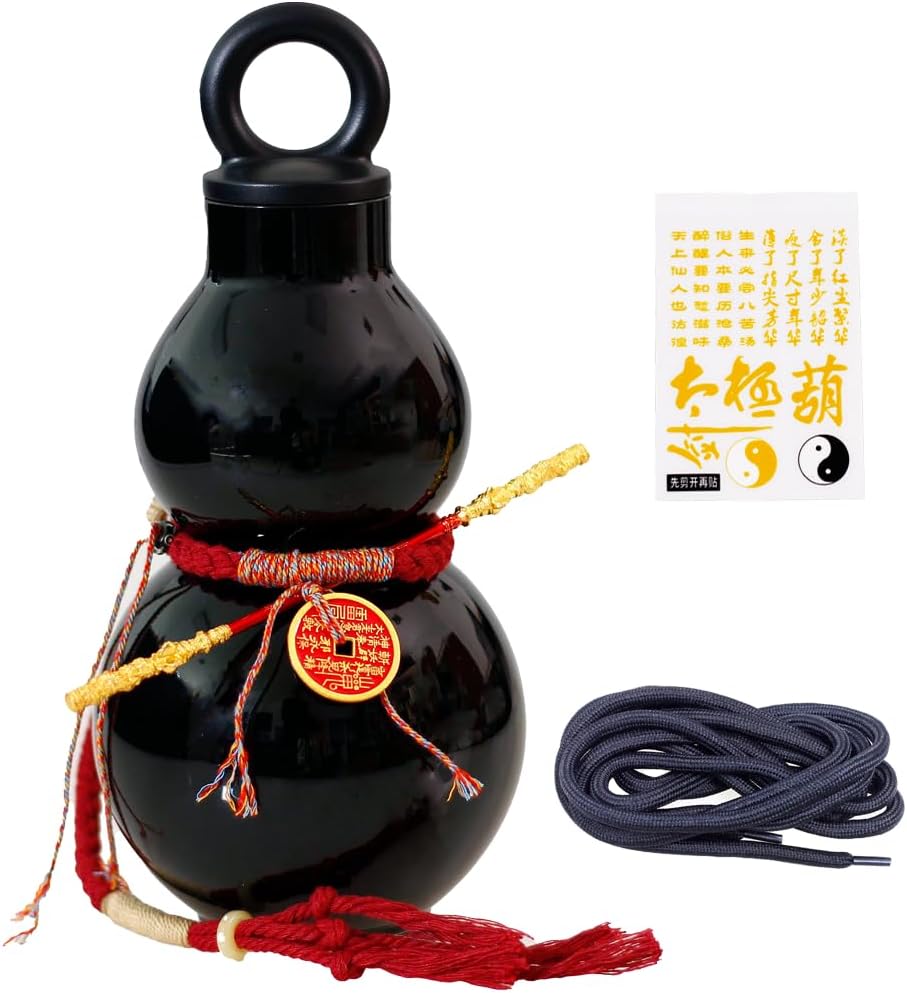 Introducing the NEW Gourd Water Bottle, a perfect blend of tradition and modern style, ideal for CAMPING, TRAVEL, and everyday use. This WATERBOTTLE features a DRIED GOURD design inspired by ancient Chinese culture, making it a unique and eye-catching accessory. The 800ml capacity and 9-inch height ensure you have enough WATER for your adventures, while the 5.7-inch golden hoop rod adds a touch of elegance. The black STRAPS and DIY stickers allow for customization, letting you create a one-of-a-kind WATER GOURD. Whether you're sipping SAKE or quenching your thirst, this LEAK PROOF CUP ensures a mess-free experience.Don't miss out on this stylish and functional addition to your collection of REUSABLE BOTTLES. Order now and experience the WU KONG GOURD like never before!