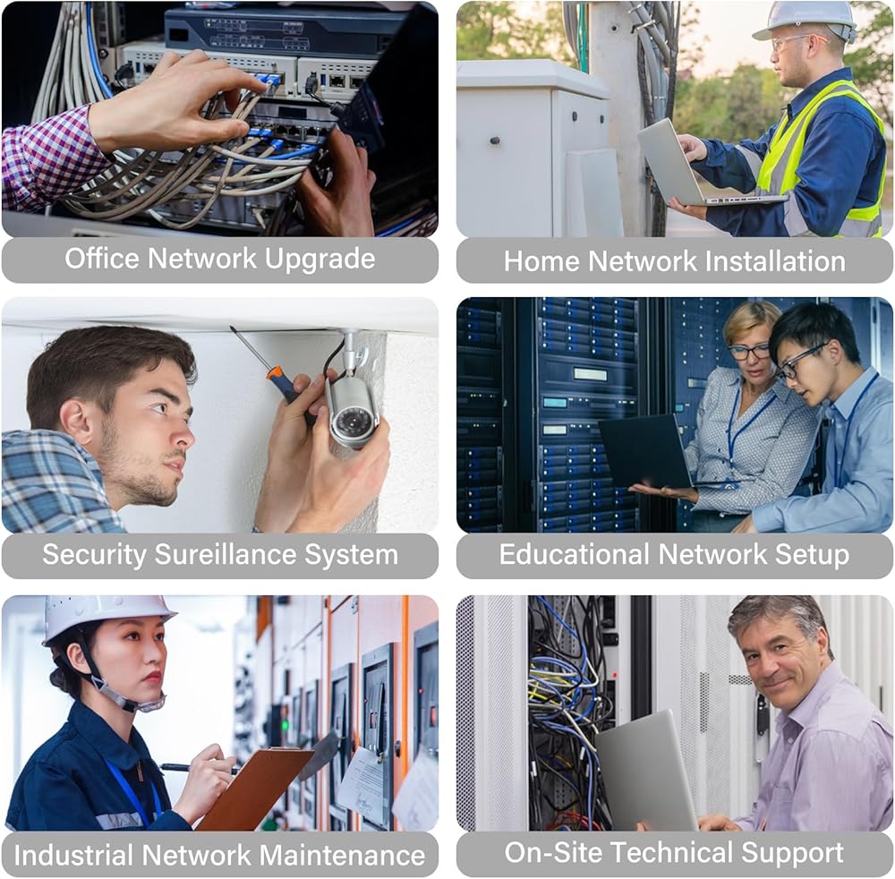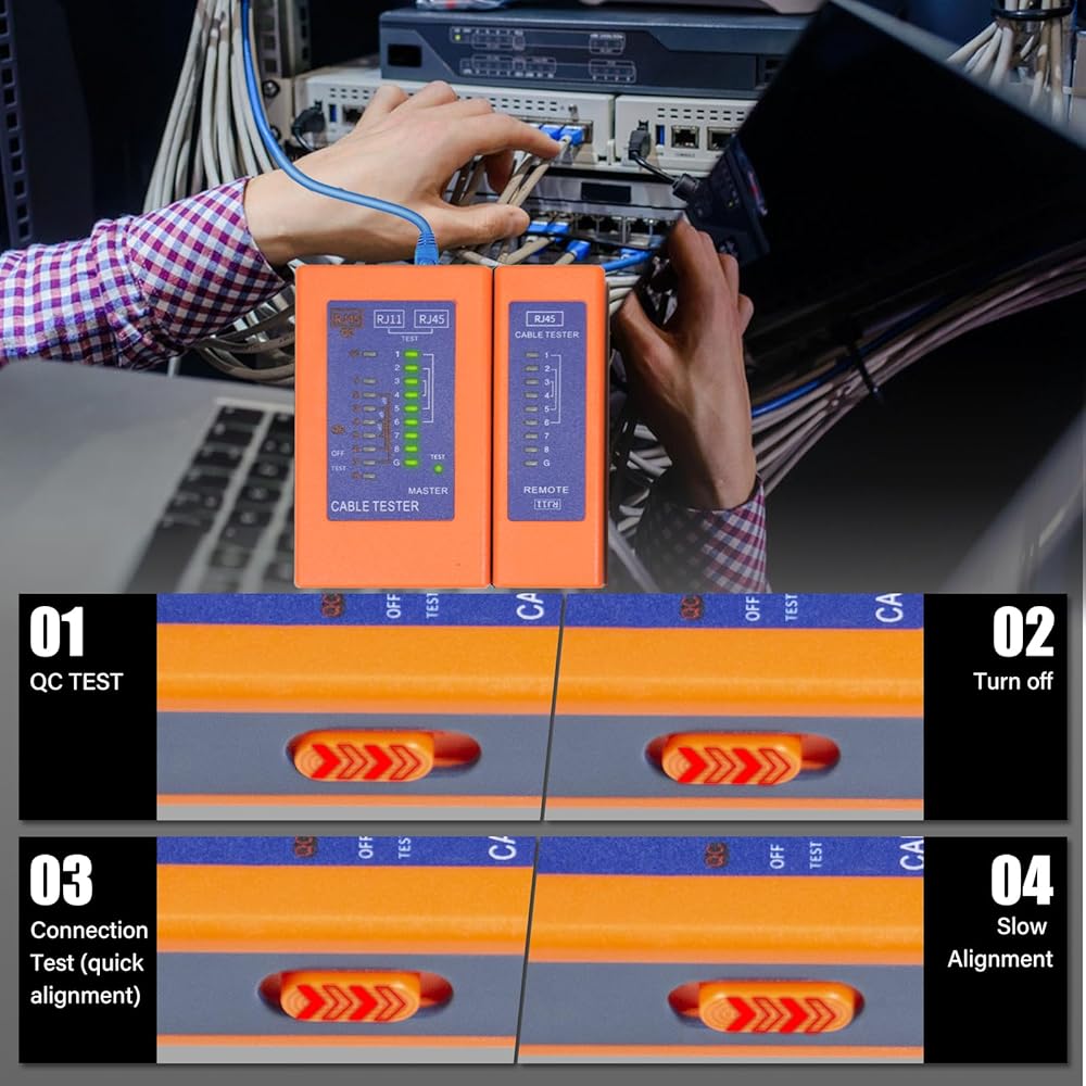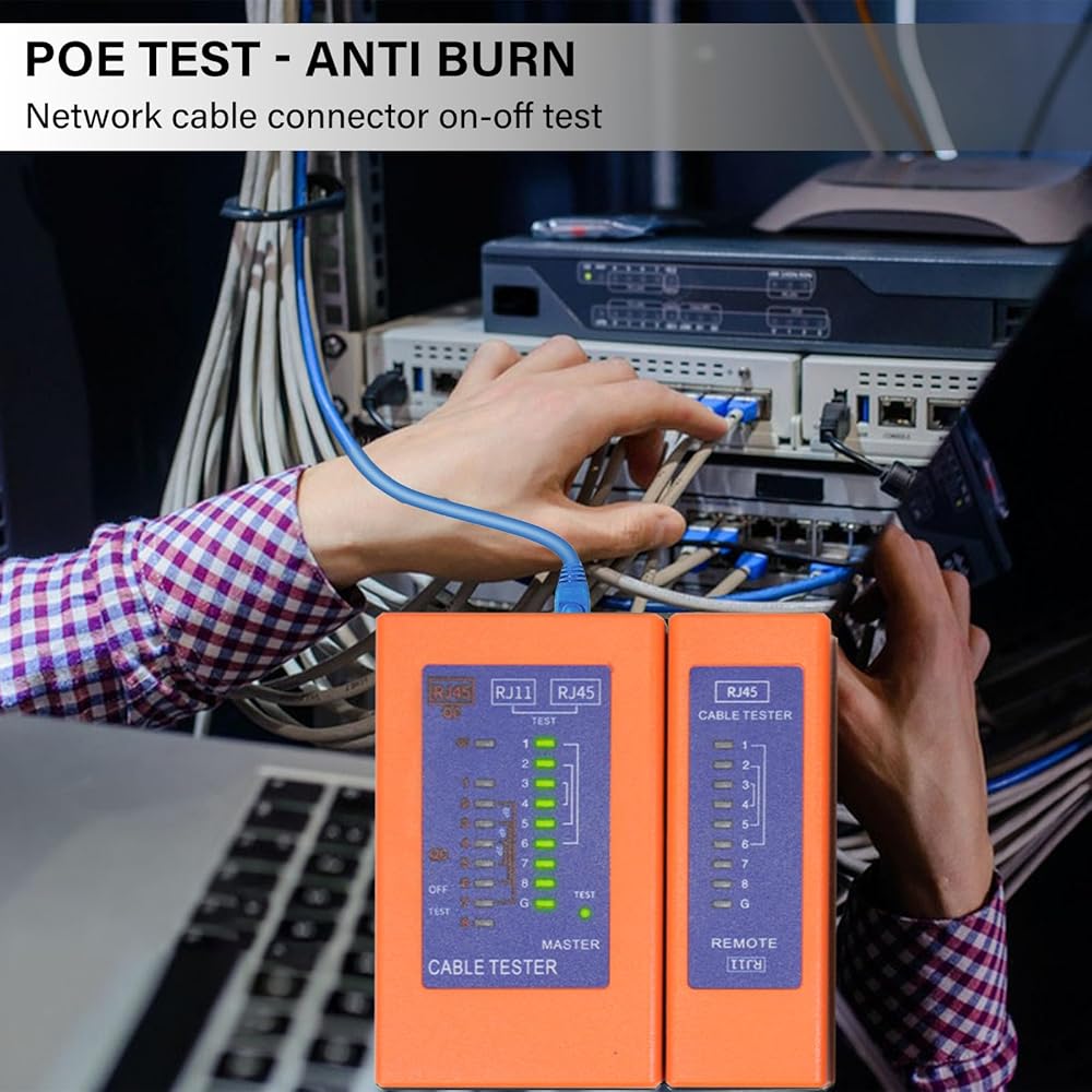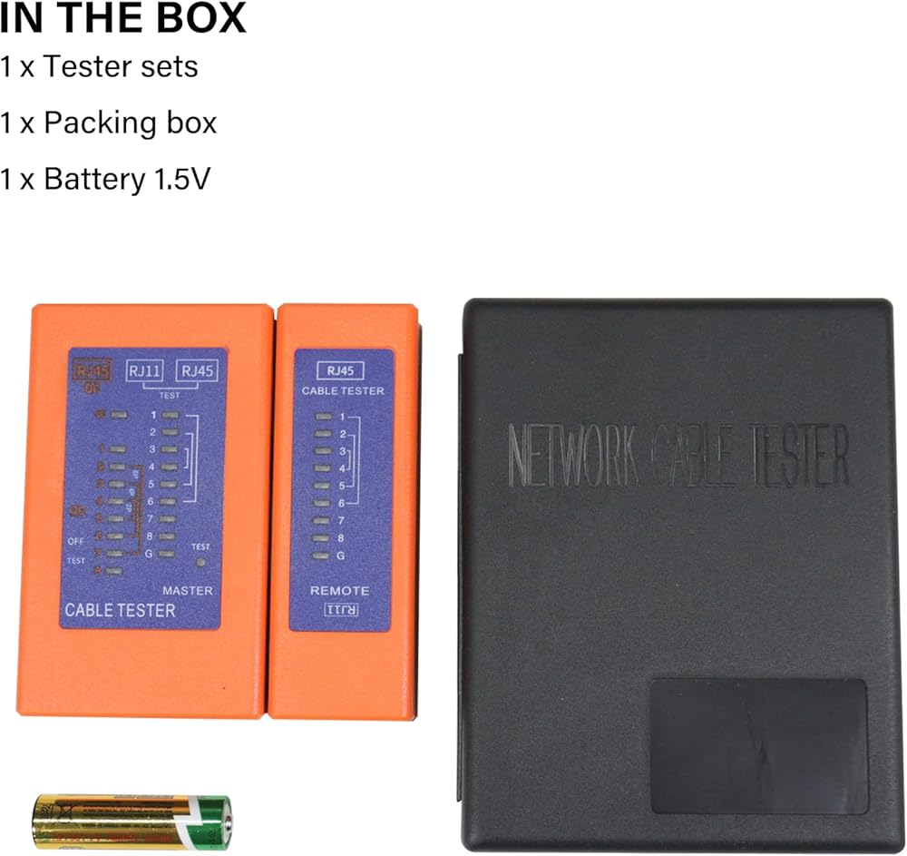 4-Dorts لاختبار متعدد: يتم تطبيق اختبار كبل الشبكة هذا على أنواع مختلفة من اختبار المقابس المعيارية ، مثل RJ11 و RJ12 و RJ45 CAT5 و CAT5E و CAT6 و CAT6A ، مما يجعله مناسبًا لمجموعة واسعة من الكابلات الشبكة والهاتف ، تغطية جميع أنواع الاتصال الشائعة. أداة اختبار الشبكة هذه تجعل اختبار الكبل بسهولة.