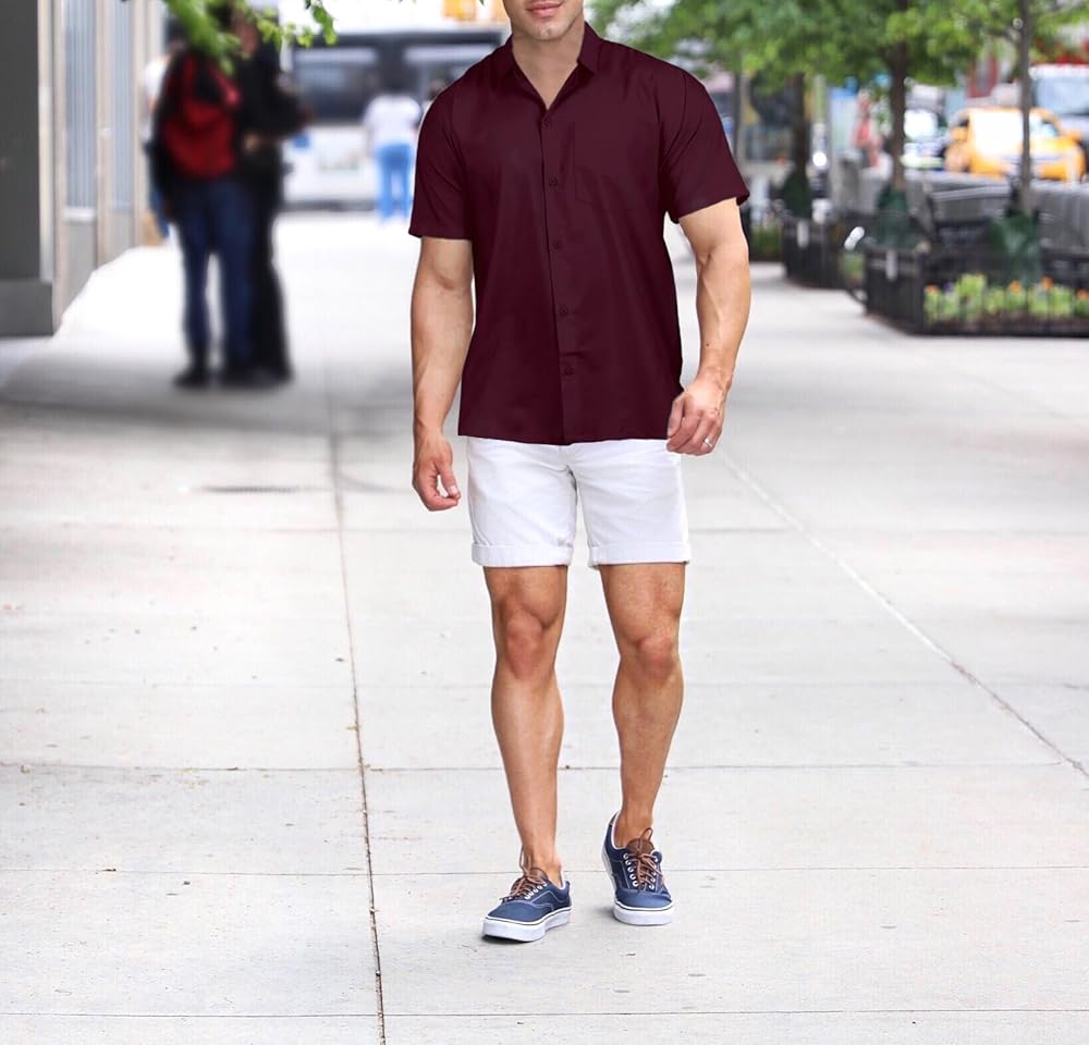 مميزات القميص: قمصاننا الكاجوال للرجال تتميز بزر إغلاق أمامي، وجيب رقعة على يسار الصدر لوضع الأشياء التي تحتاجها، وأكمام قصيرة مع ياقة واسعة أنيقة، وحاشية مستقيمة مريحة، وخفيفة الوزن، ومسامية، وقماش ممتاز للاستخدام اليومي، تجربة ملائمة مريحة عادية، مطابقة مع القمصان الصلبة أو سترة البدلة الرياضية، وسراويل تشينو، والجينز، والسراويل، والسراويل، والسراويل القصيرة لاستكمال مظهرك