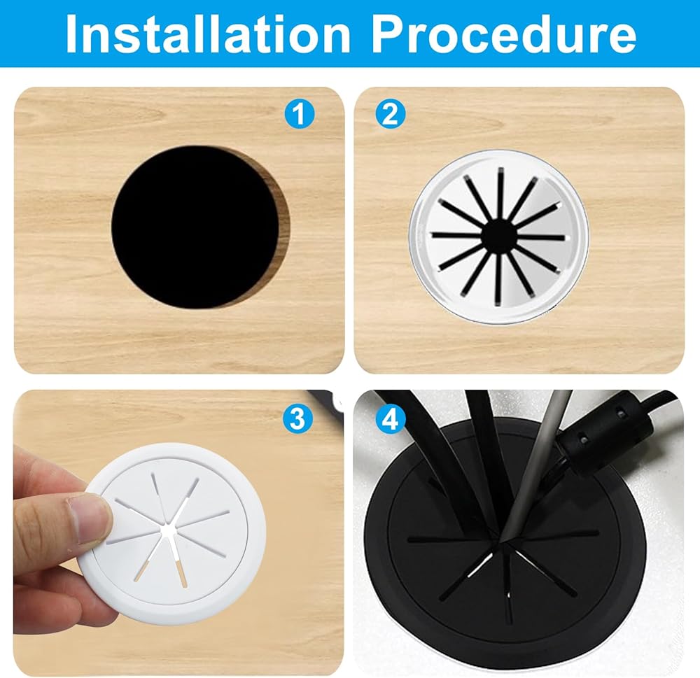 • Storage and Protection: Desk hole grommets are ideal for managing and concealing cables on desks, computer desks and living room televisions. Moreover, they safeguard the cables from daily wear and tear in other scenarios and guarantee cable safety.