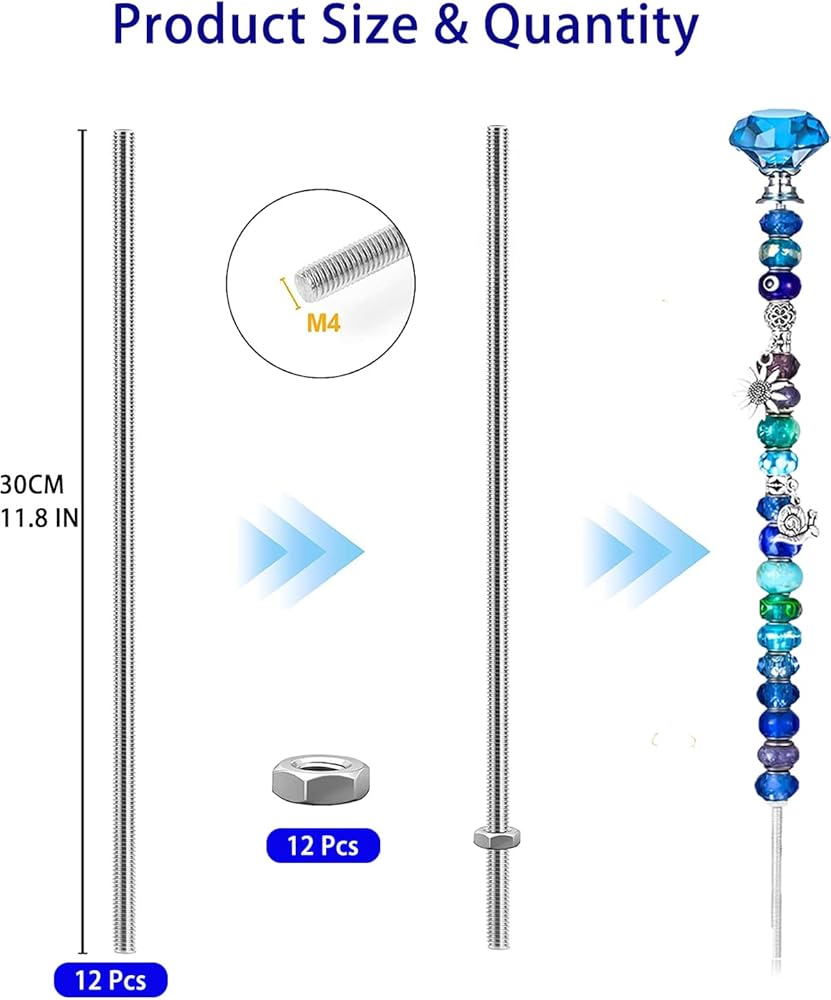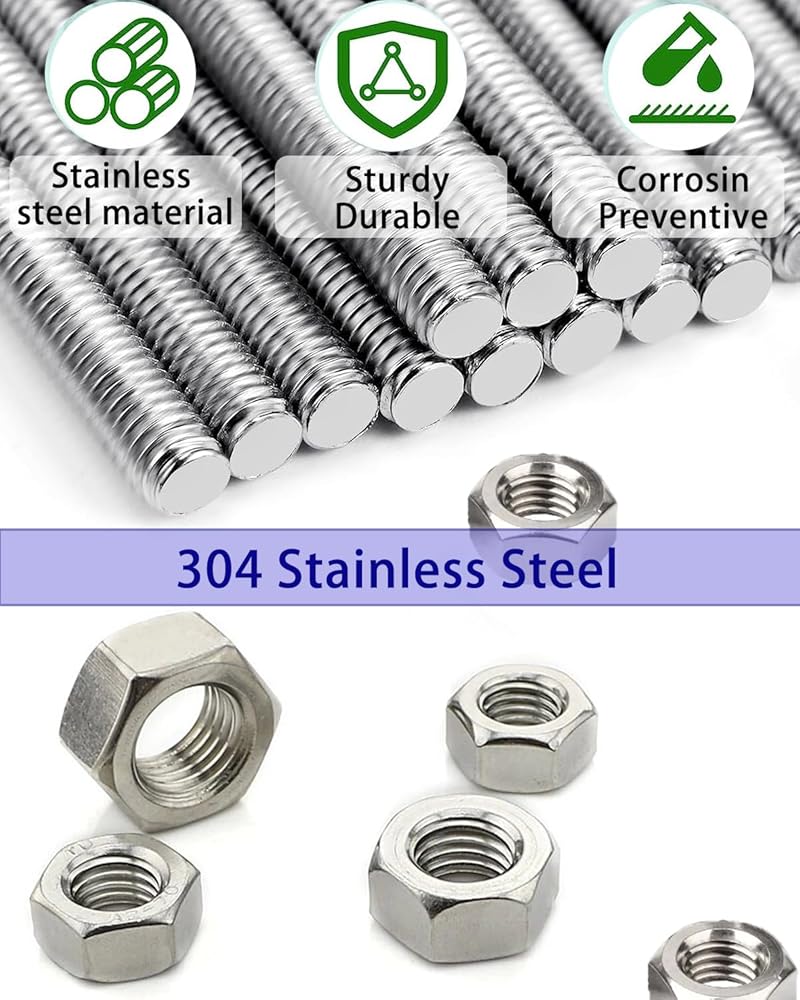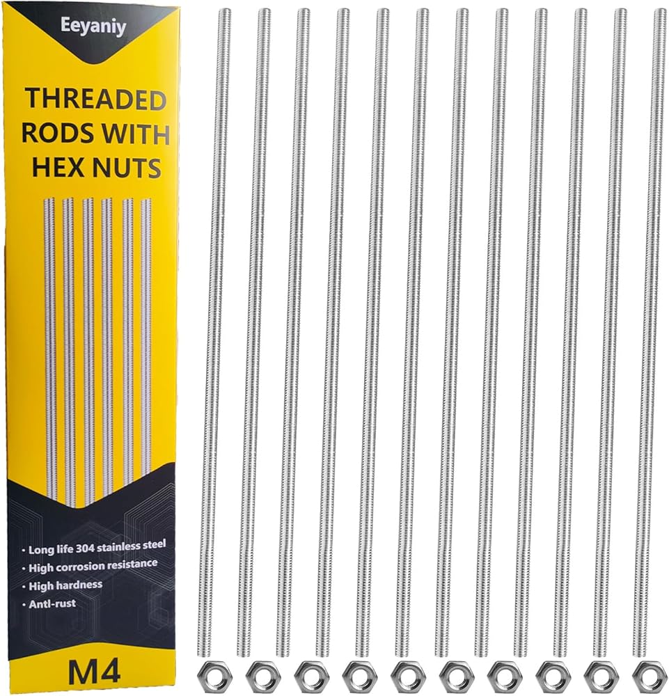 24 حزمة 8/32 بوصة × 12 '' M4 قضيب ملولب مع المكسرات السداسية 304 من الفولاذ المقاوم للصدأ تشمل 12 قطعة M4 قضبان ملولبة و 12 جهاز كمبيوترا m4 المكسرات سداسية ملولبة بالكامل لخزات حديقة بالخرز DIY وحرف حديقة
