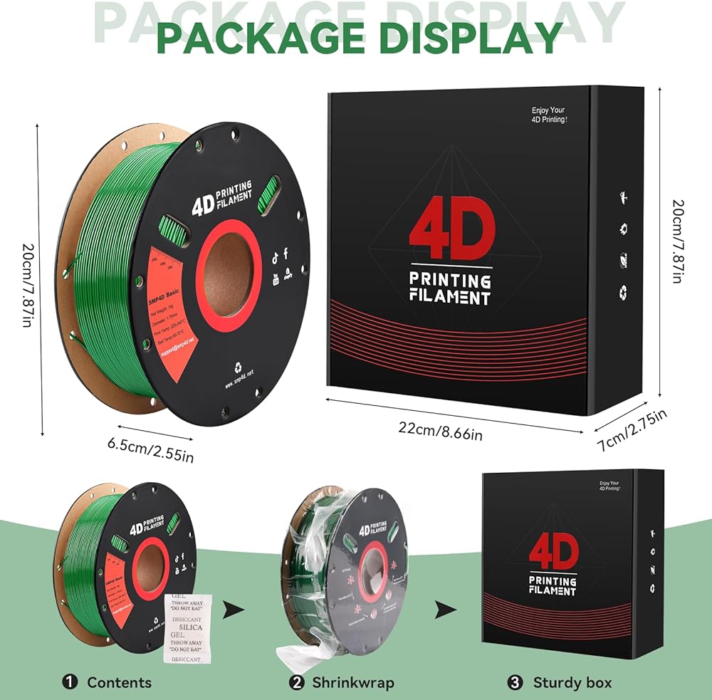 • 【Vacuum Packaging】Complete drying for 24 hours before packaging and vacuum sealed with desiccants in a transparent bag, no bubbles and easy to print.Before use, please check whether there is air leakage in the package. lf there is airleakage, please dry the filament in a 60 °C oven for 2h-6h before printing, To prevent the filament from absorbing water, please store the unused consumablesunder vacuum drying conditions.