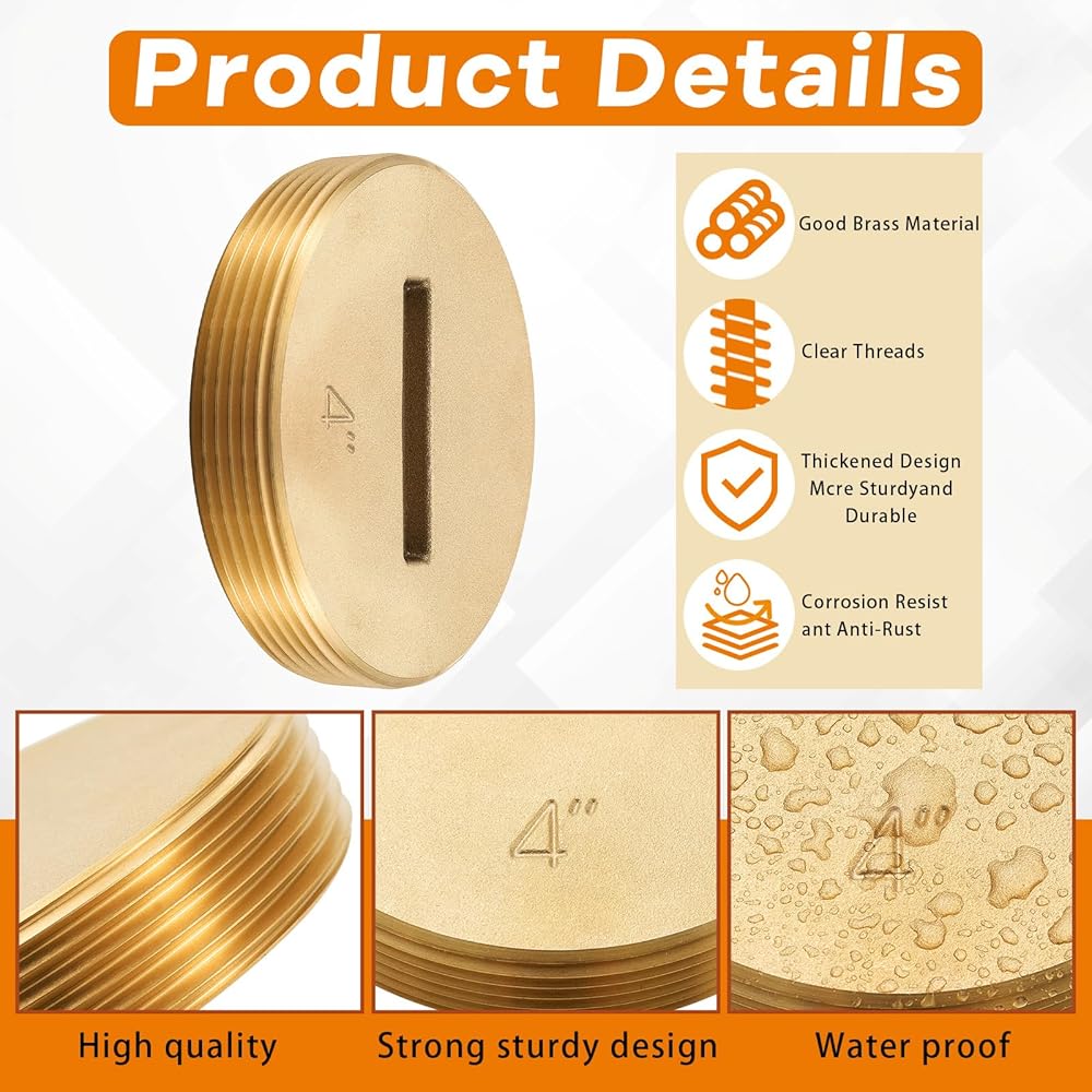 Quantity Packaging: you will receive 2 pieces of slotted brass cleaning plugs, the outer diameter of this brass cleaning plug is 4 inches