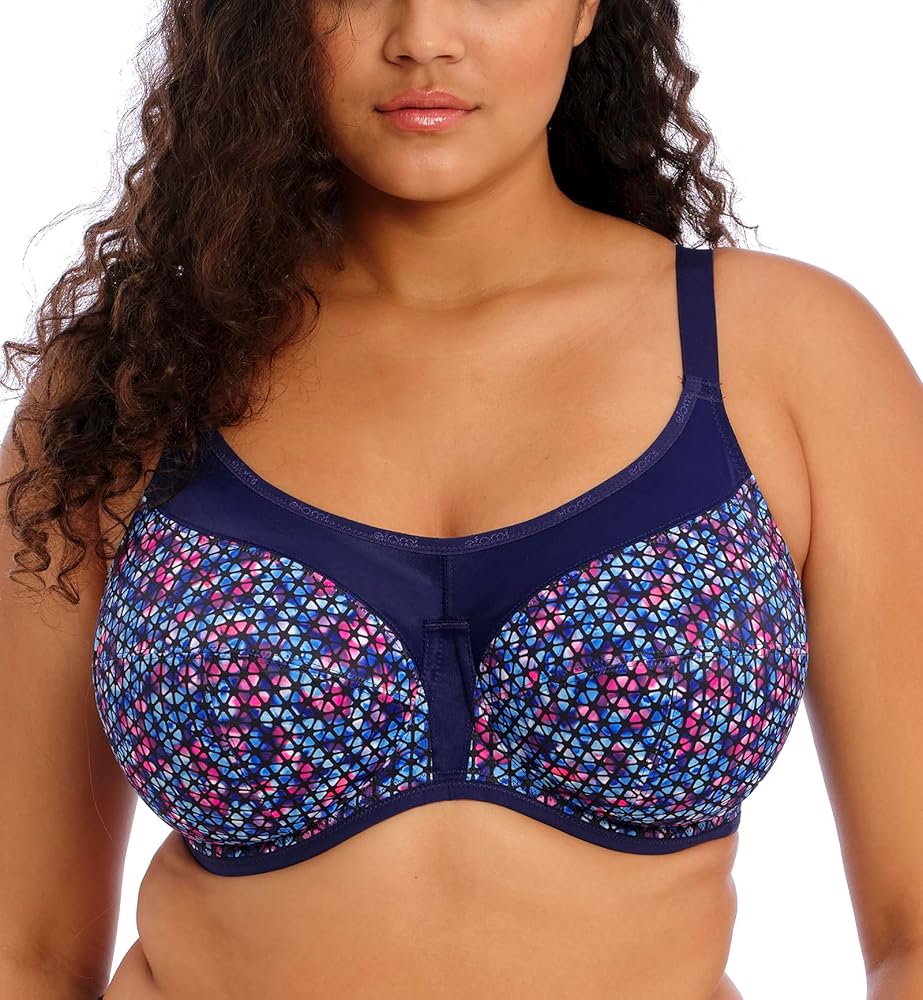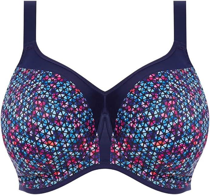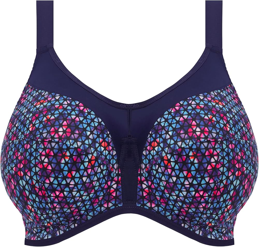 Sporty Style: The Energise Sports Bra features a vibrant geometric print in jewel colors, adding a stylish touch to your workout gear.