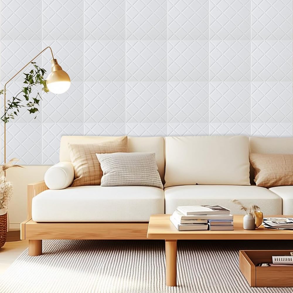 12pcs 12 "× 12" × 0.4 "ألواح جدران مقاومة للصوت ، لوحات صوتية ذاتية اللصق للجدران ، الألواح الصوتية البيضاء للمنازل والمكاتب والاستوديوهات