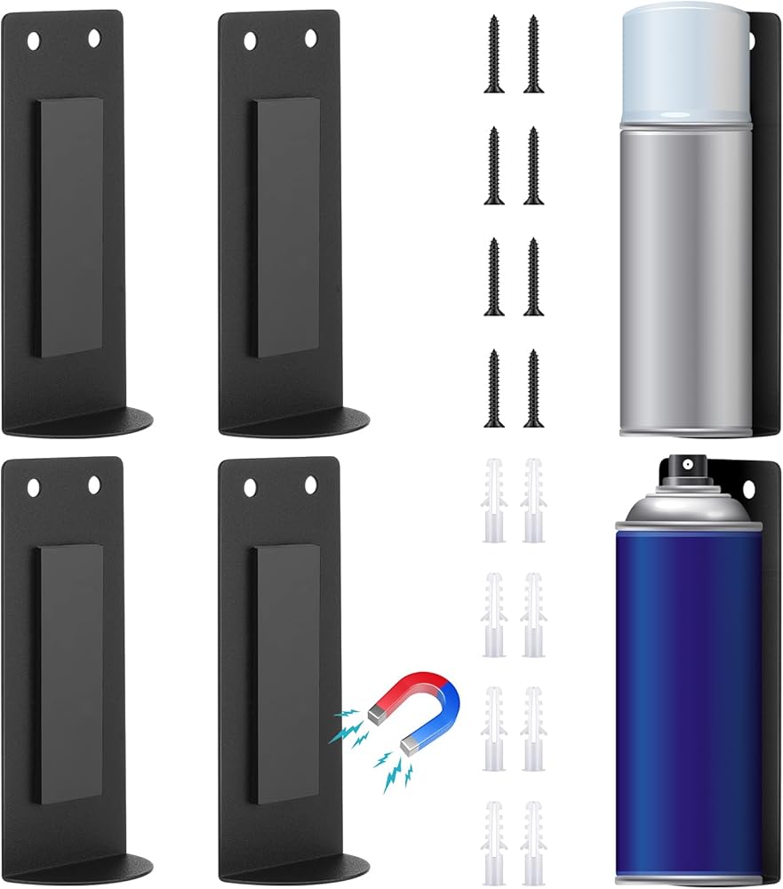 • What's Included: our product offers 4 powerfully magnetic spray bottle holders, ensuring a sturdy stick to any flat metal surface; The slight edge at the bottom of each holder makes sure spray cans are held securely, preventing any possible slips or falls