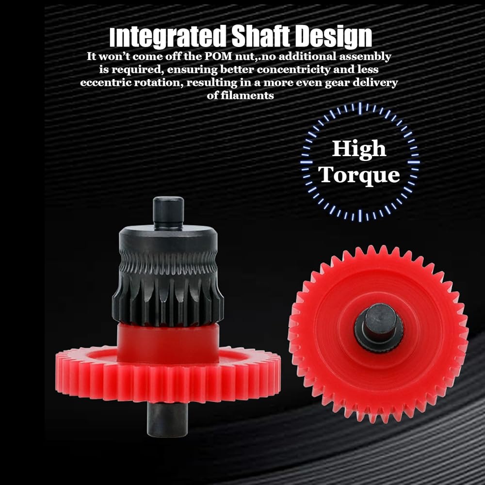 Innovative design, easier to maintain: This upgraded hot end extruder gear adopts an feature a one-piece shaft design that is less likely to come off the POM nut. Most importantly, no additional assembly is required, ensuring better concentricity and less eccentric rotation, resulting in a more even gear delivery of filaments,making your printed works more delicate and exquisite.