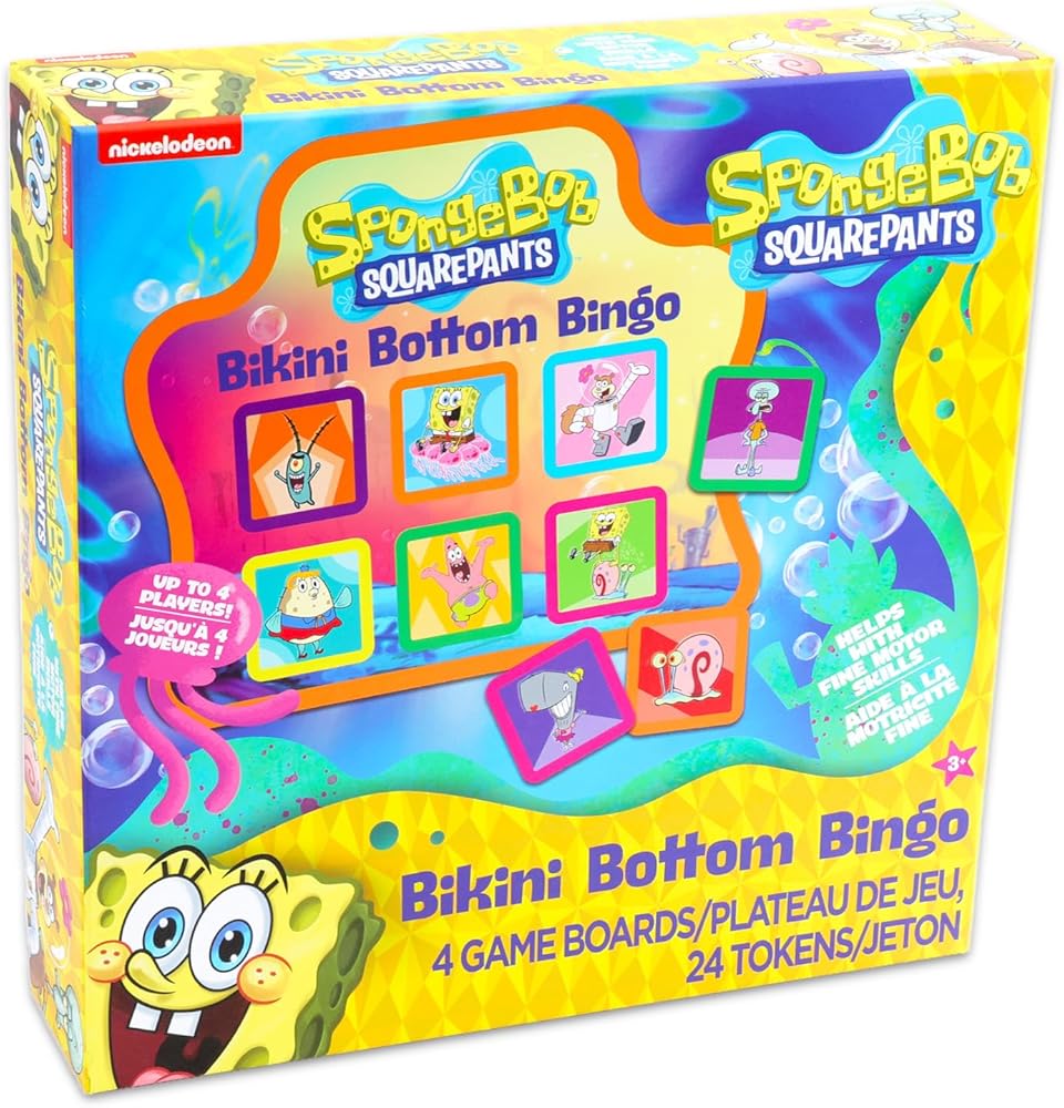Spongebob Bingo for Kids - Bundle with Spongebob Board Game with 4 Game Boards, Game Pieces, Stickers, More | Spongebob Squarepants Bingo Set for Toddlers, Boys, Girls.