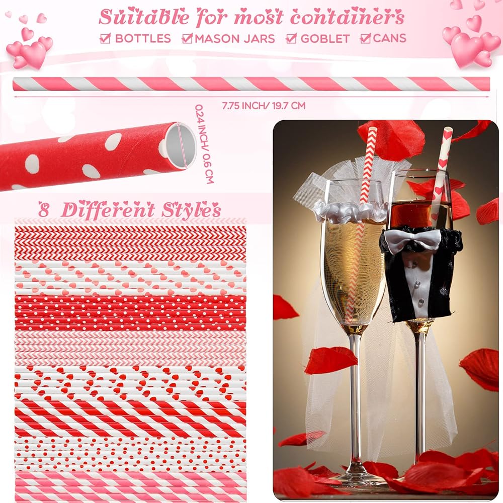Abundant Quantity: there are 500 pieces of Valentine's Day straws in 8 styles, each style ranges from 62 to 66 pieces, rich quantities and diverse styles can meet your daily or party using needs