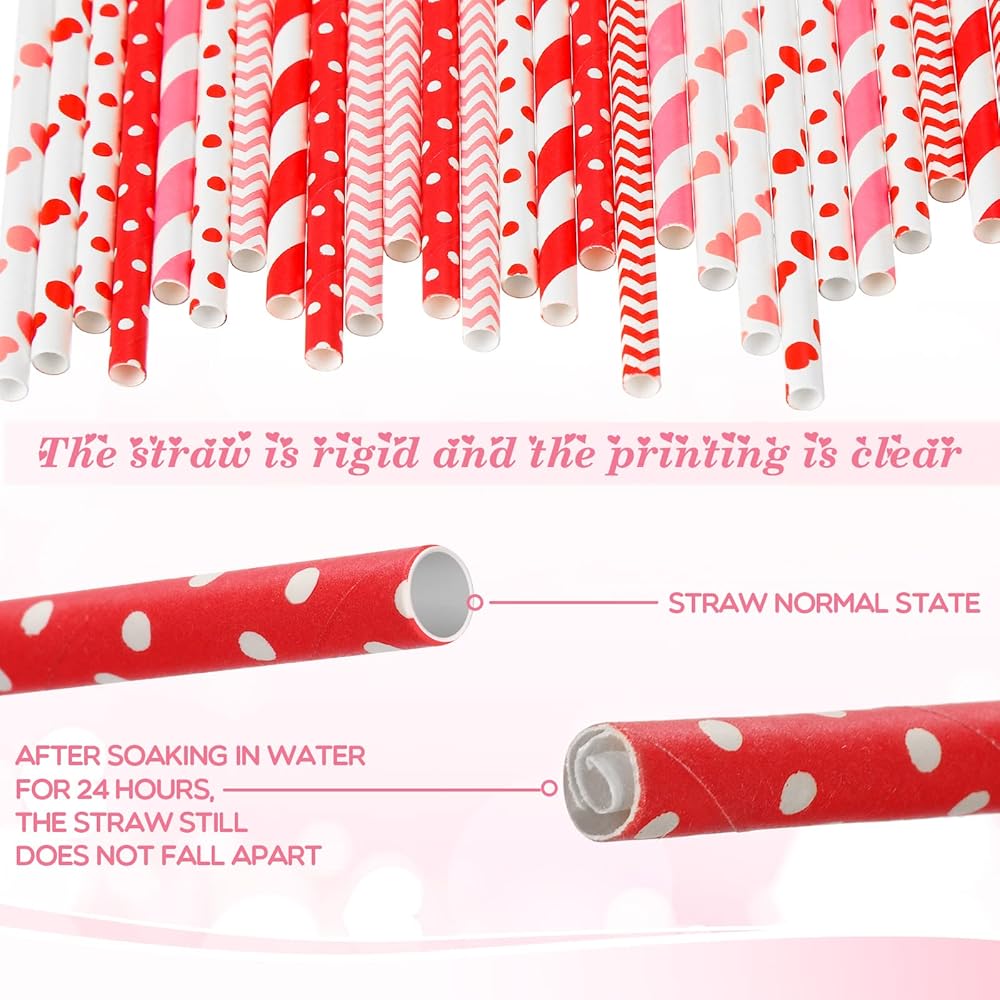 Safe Material: the Valentines drinking straws are made of quality paper, which is safe and reliable, no peculiar smell, not easy to break or tear, suitable for hot and cold drinks, can be kept in drinks for hours, soaked in water and will not fall apart, you can use them with confidence