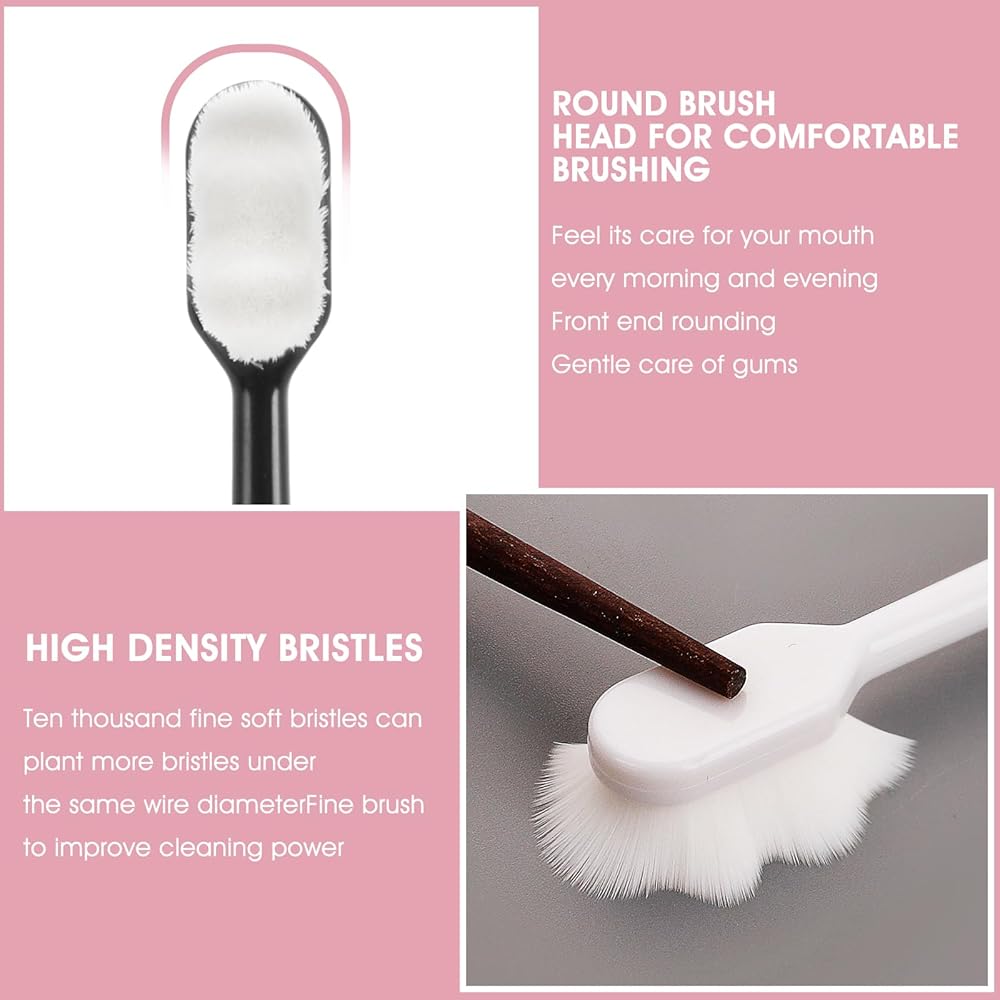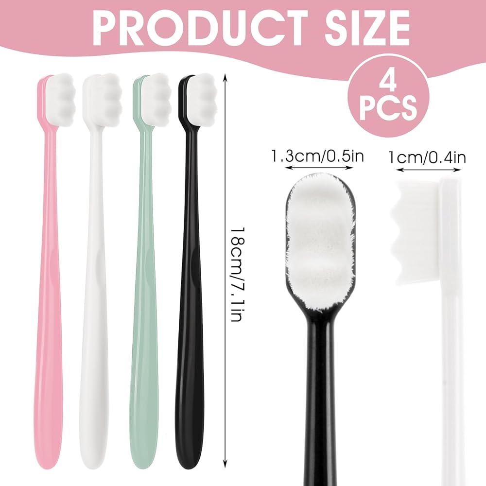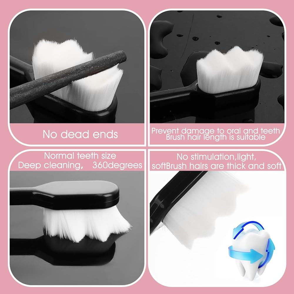 ElevateTech Extra Soft Toothbrush, 4 Pcs Micro Nano Toothbrushes with 10000 Ultra Soft Floss Black Wave Bristles Manual Toothbrush for Adults Kids Sensitive Gums