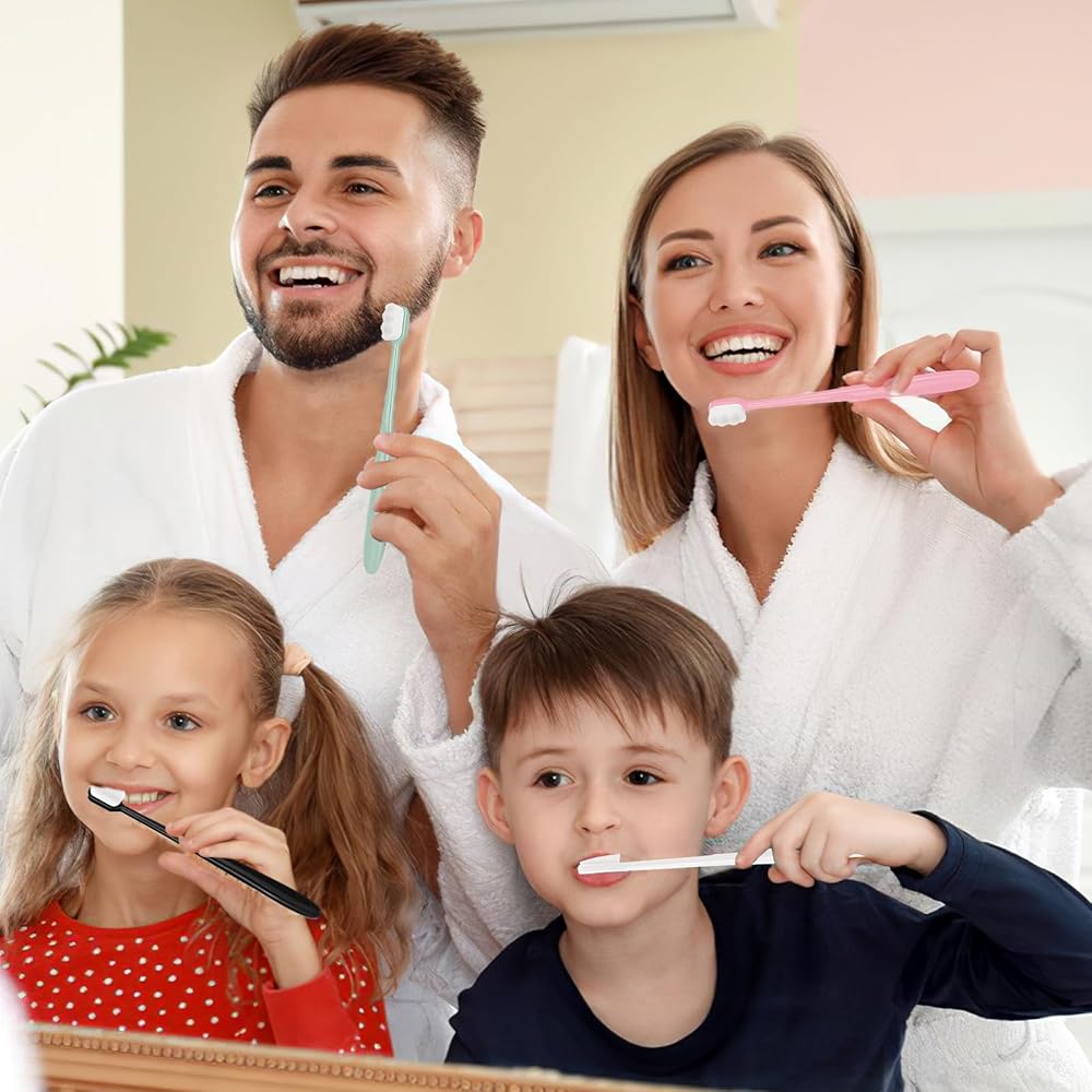 【Versatile and Convenient】Our nano toothbrush is suitable for adults, kids, and pregnant women, making it a versatile addition to any household. The 4-pack includes black, white, pink, and green toothbrushes, each individually packaged for convenience and hygiene.