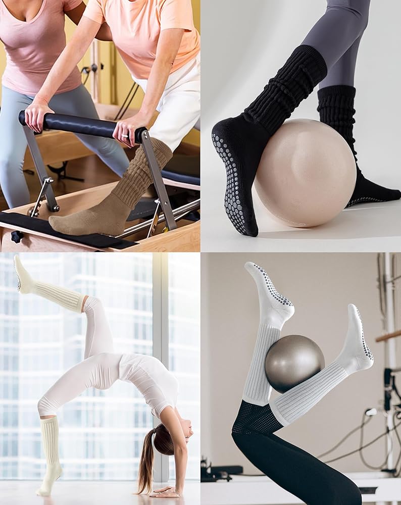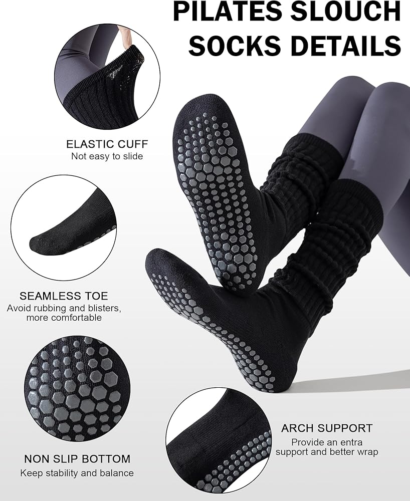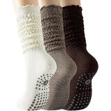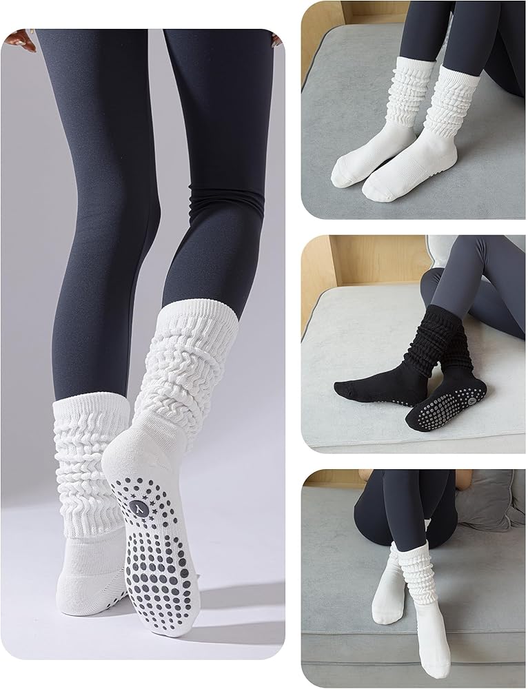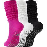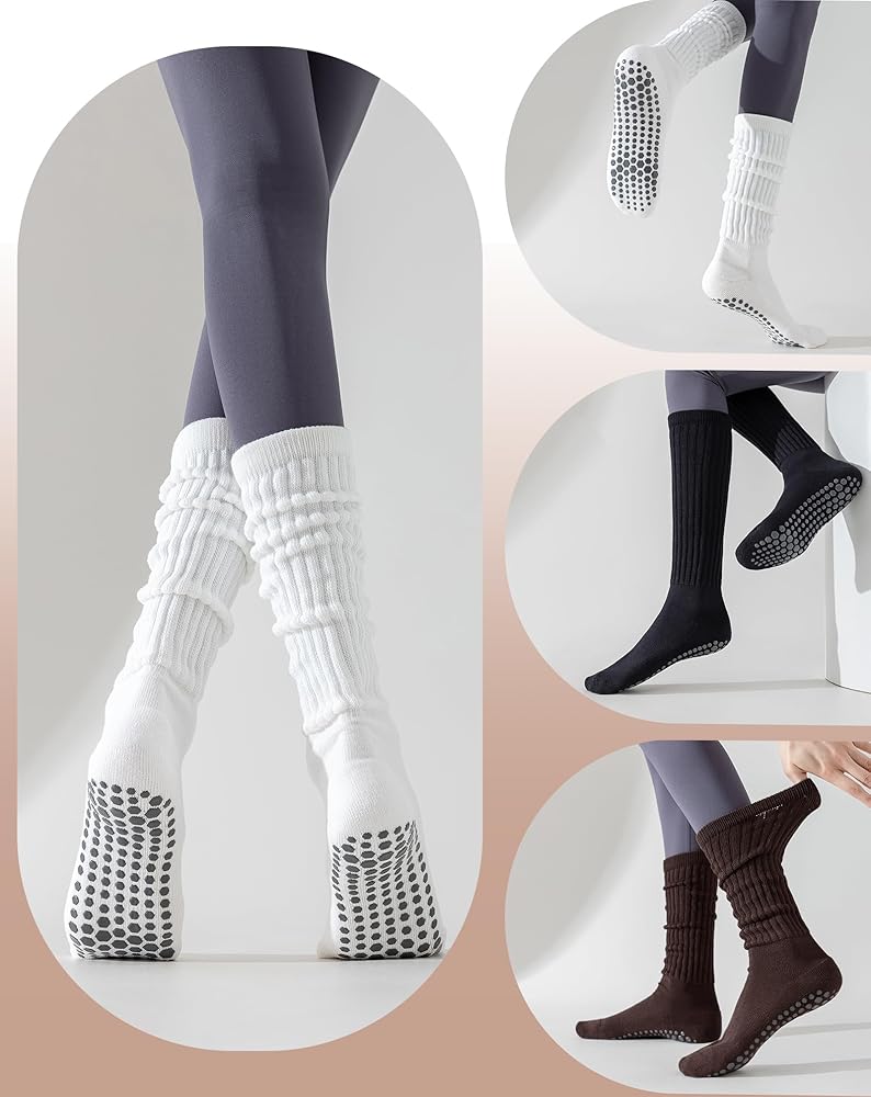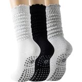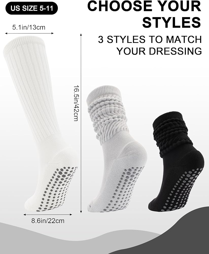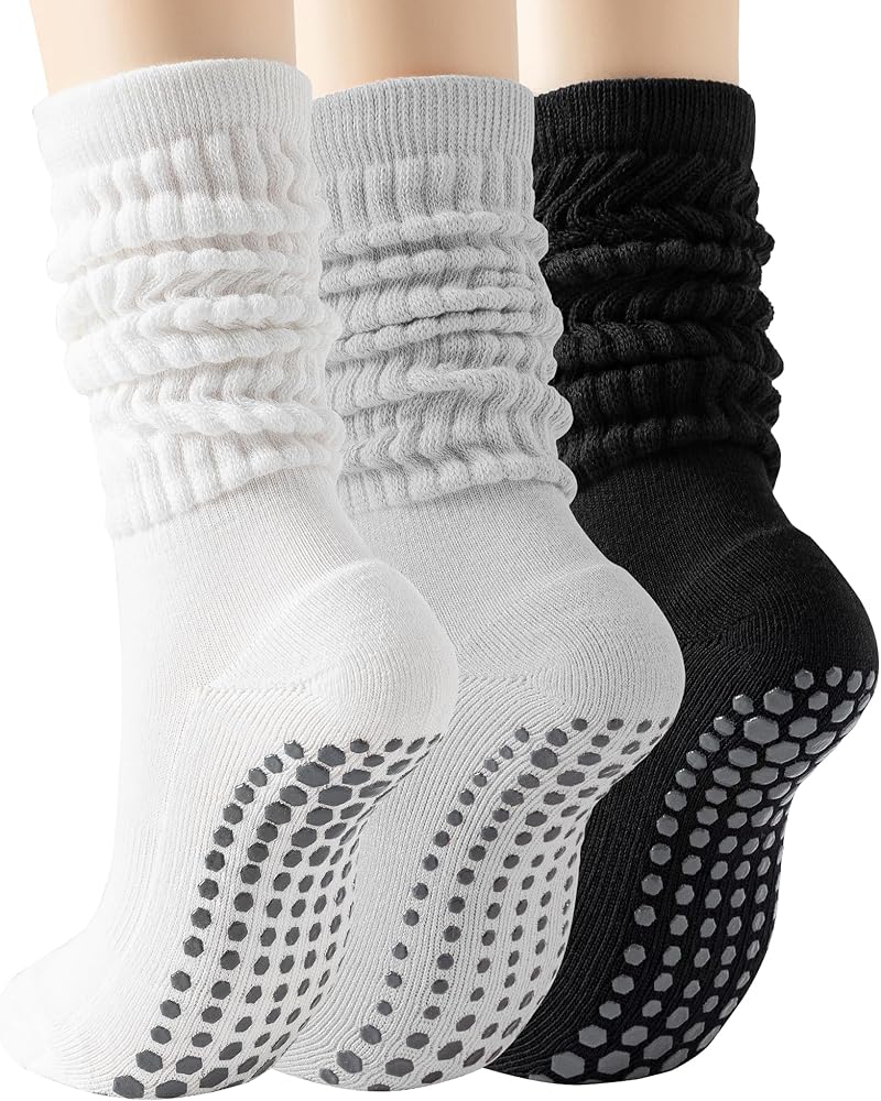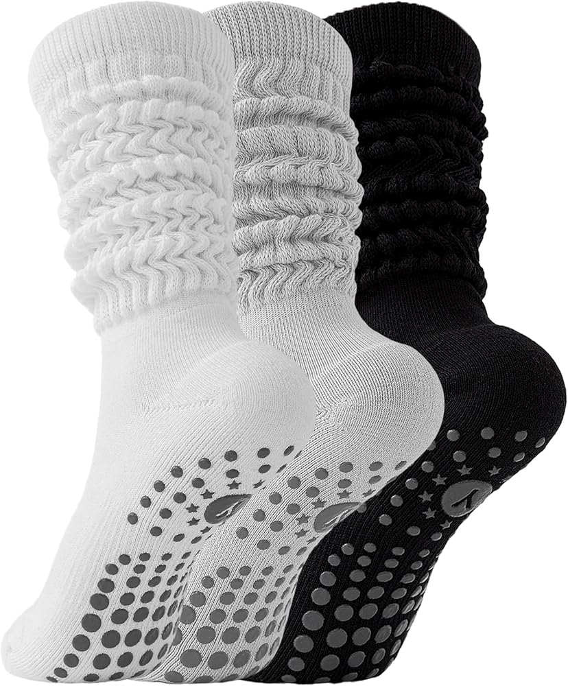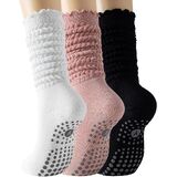 3 Pairs Slouchy Pilates Socks with Grips for Women Scrunch Cute Yoga Grippy Non Slip Long Socks for Barre Workout Hospital