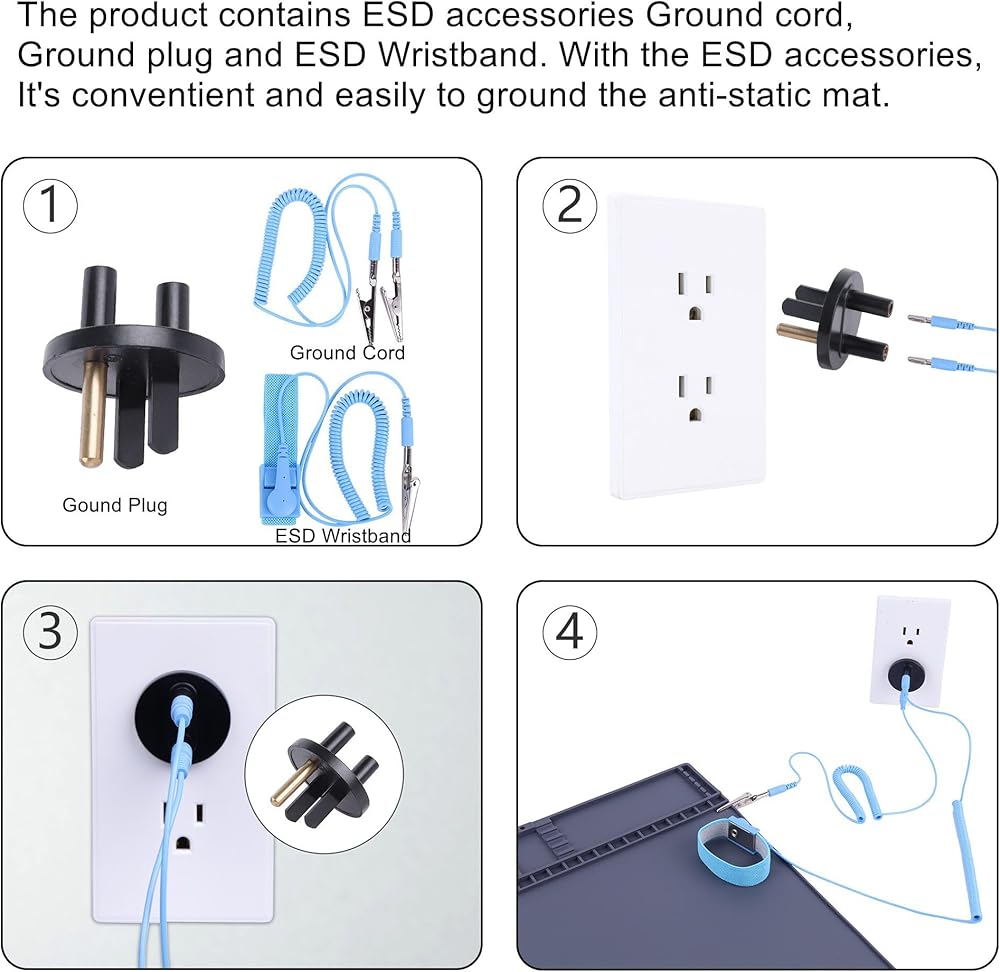 🥇【 إكسسوارات ESD لتأسيس حصيرة antatic】- يحتوي المنتج على مجموعة من ملحقات تأريض ESD. ويشمل قابس التأريض ، سلك التأريض ، و ESD معصم. من خلال إكسسوارات ESD هذه ، ستكون مريحة للغاية بالنسبة لك على حصيرة مضادة للثبات وحماية أجهزة الإلكترونيات الخاصة بك بشكل فعال.