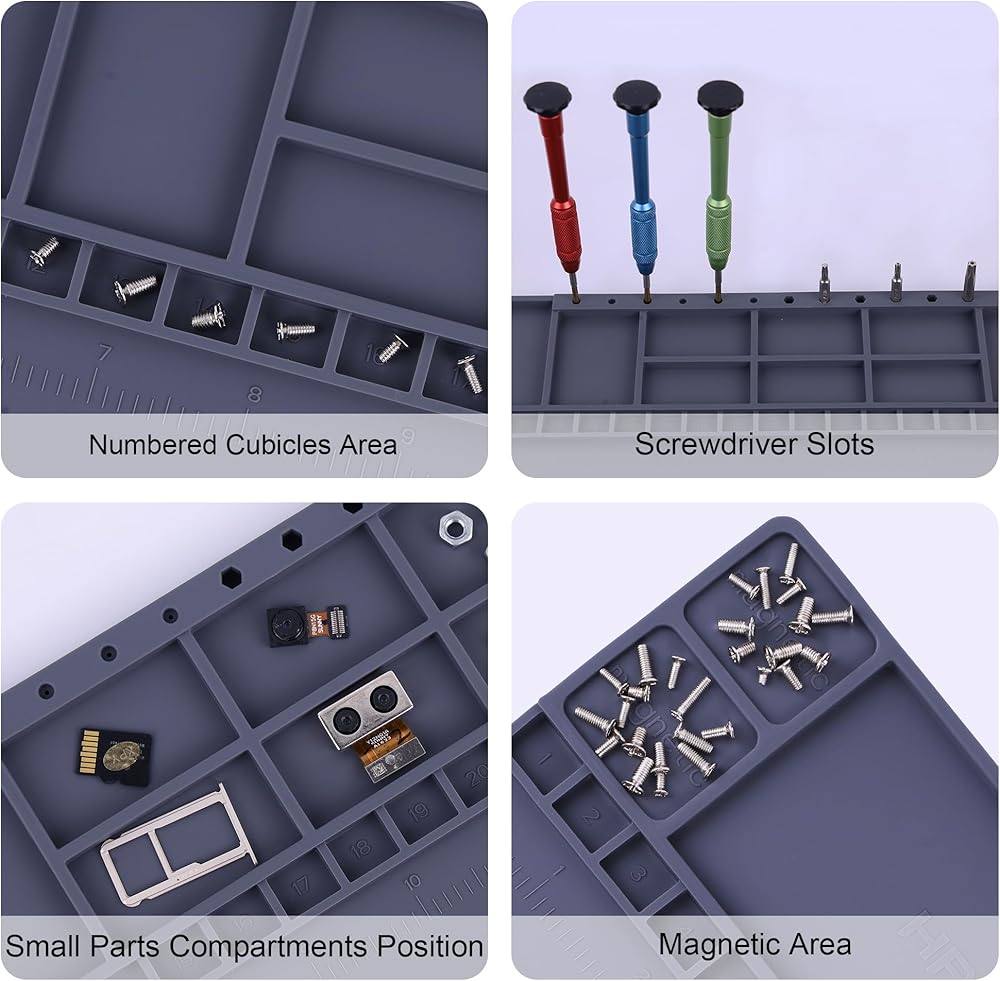 🥇【 حافظ على نظيفة ومرتبة】- الحصيرة الكبيرة المضادة للثبات لديها Deviders SAPCE ومقصورة مرقمة والتي تحافظ على مكوناتك الصغيرة المفككة في تصنيف جيد ، وأسهل الحصول عليها. لا تقلق من البراغي أو المكثفات الصغيرة المفقودة في أعمال الإصلاح الخاصة بك. إنها تعمل على تحسين كفاءة عملك والحفاظ على نظافة ومرتبة منصة الصيانة. حصيرة العمل المضادة للحيوانية غير سامة ولا رائحة مع مواد سيليكون ESD القياسية FDA. كل من السطح والخلفي من حصيرة عمل ESD غير قابلة للانزلاق ، لن ينزلق على مكتبك.