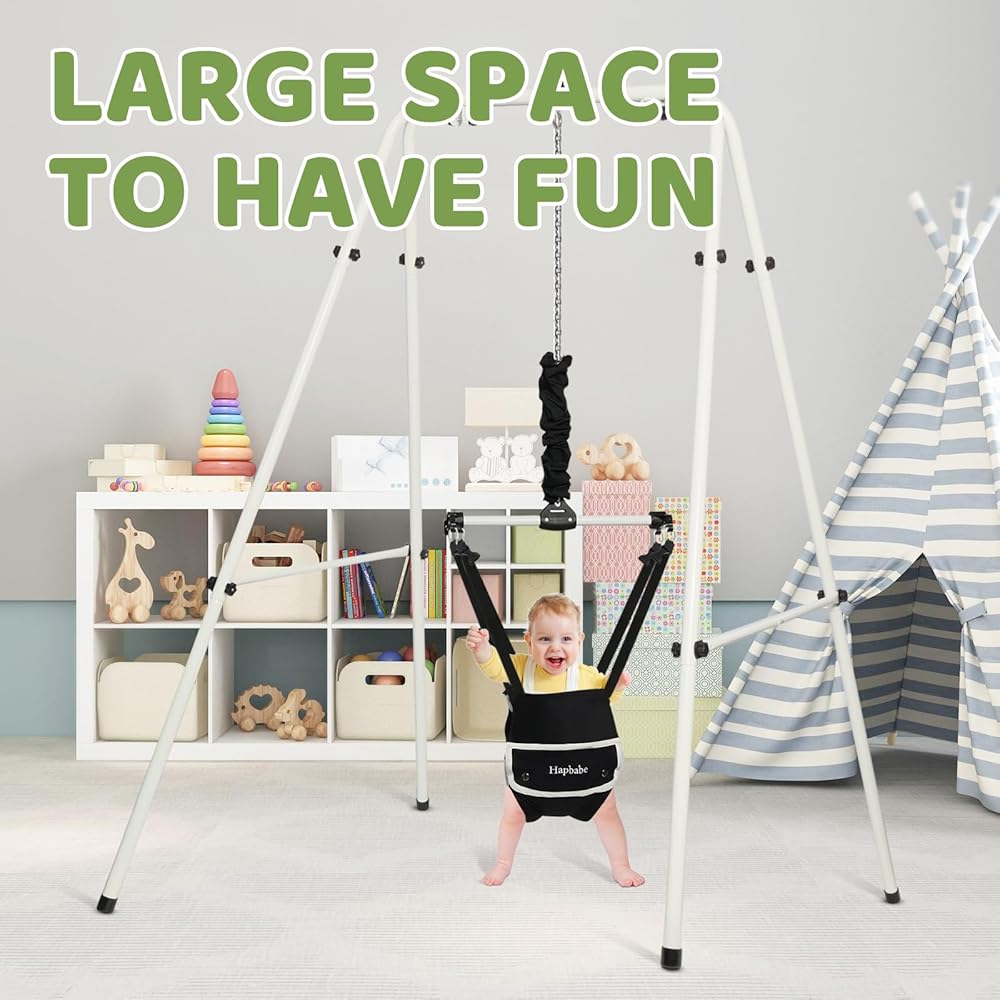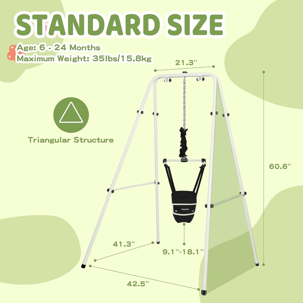 مصممة للرضع من 6 أشهر من العمر إلى طفل صغير. يمكن استخدام Jumper Hapbabe في المساحات التي لا تحتوي على إطار باب. يساعد على تقوية عضلات ساق الطفل ونواة الاستعداد للمشي والجري والقفز.
