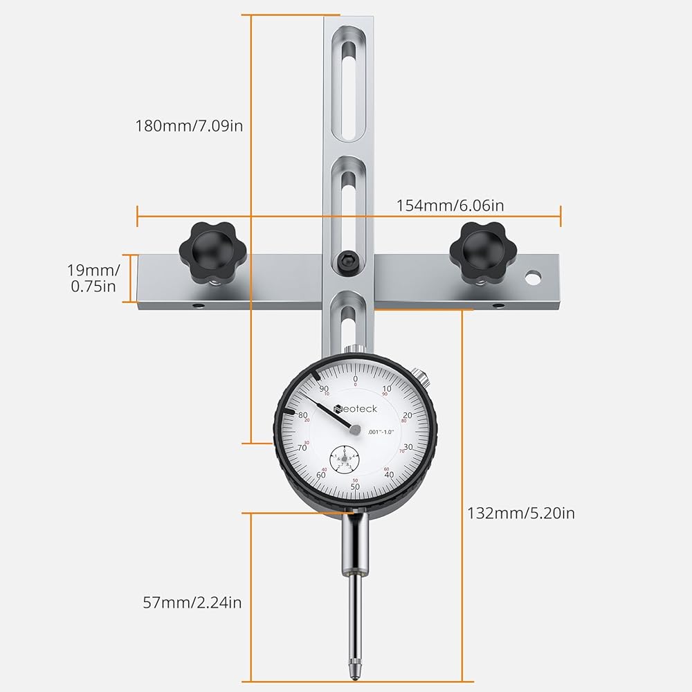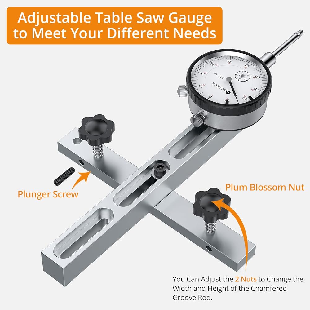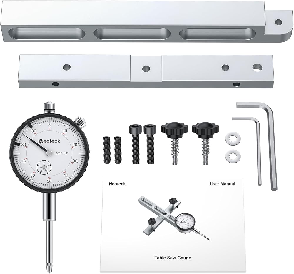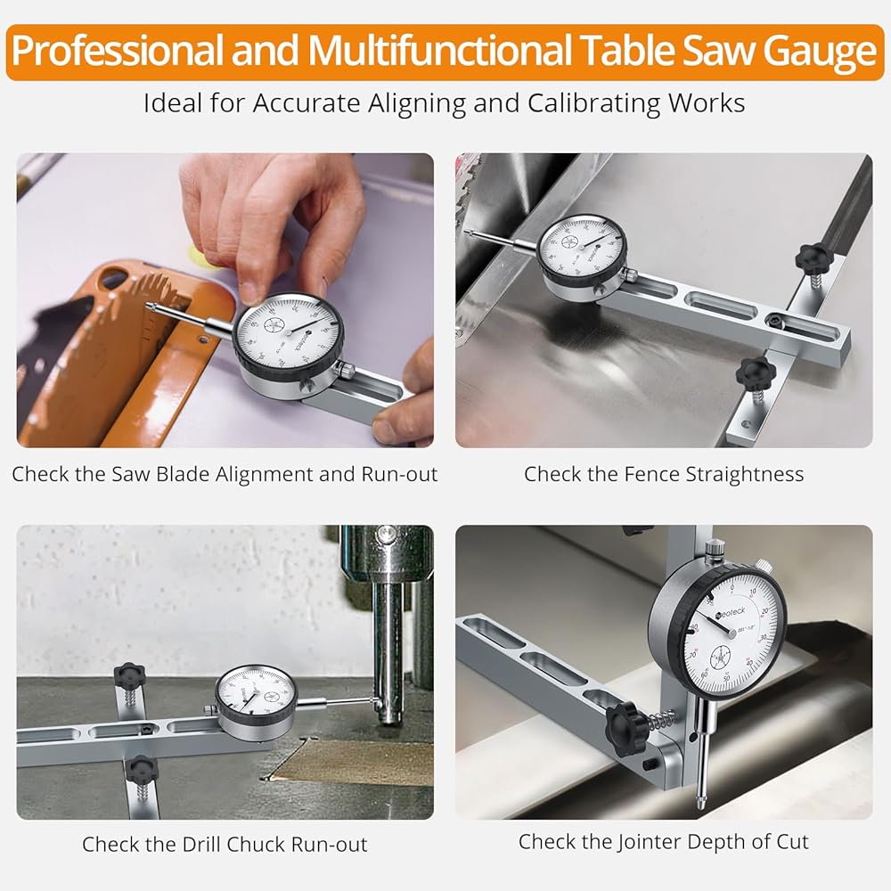 professional Gauge Professional Professional Saw Dial Cauge】 Neoteck Table Ciabrator هو أداة اختبار مصممة وفقًا لحجم فتحة Miter القياسي (3/8 "× 3/4") ، ويمكنه اختبار منشار الجدول ومحاذاة السياج ومشكلات الموضع. يمكن أن يقوم مقياس منشار مؤشر الطلب بالتحقق من الشجرة والشفرة ، وفتحة ميتري إلى Sweateness ، أو Arbor/Chuck Run-Out أو أي قياس محاذاة آخر تريده. يستخدم على نطاق واسع في أعمال المعايرة ، وآلات المتجر ، ومناشير النطاق وآلات الحفر.