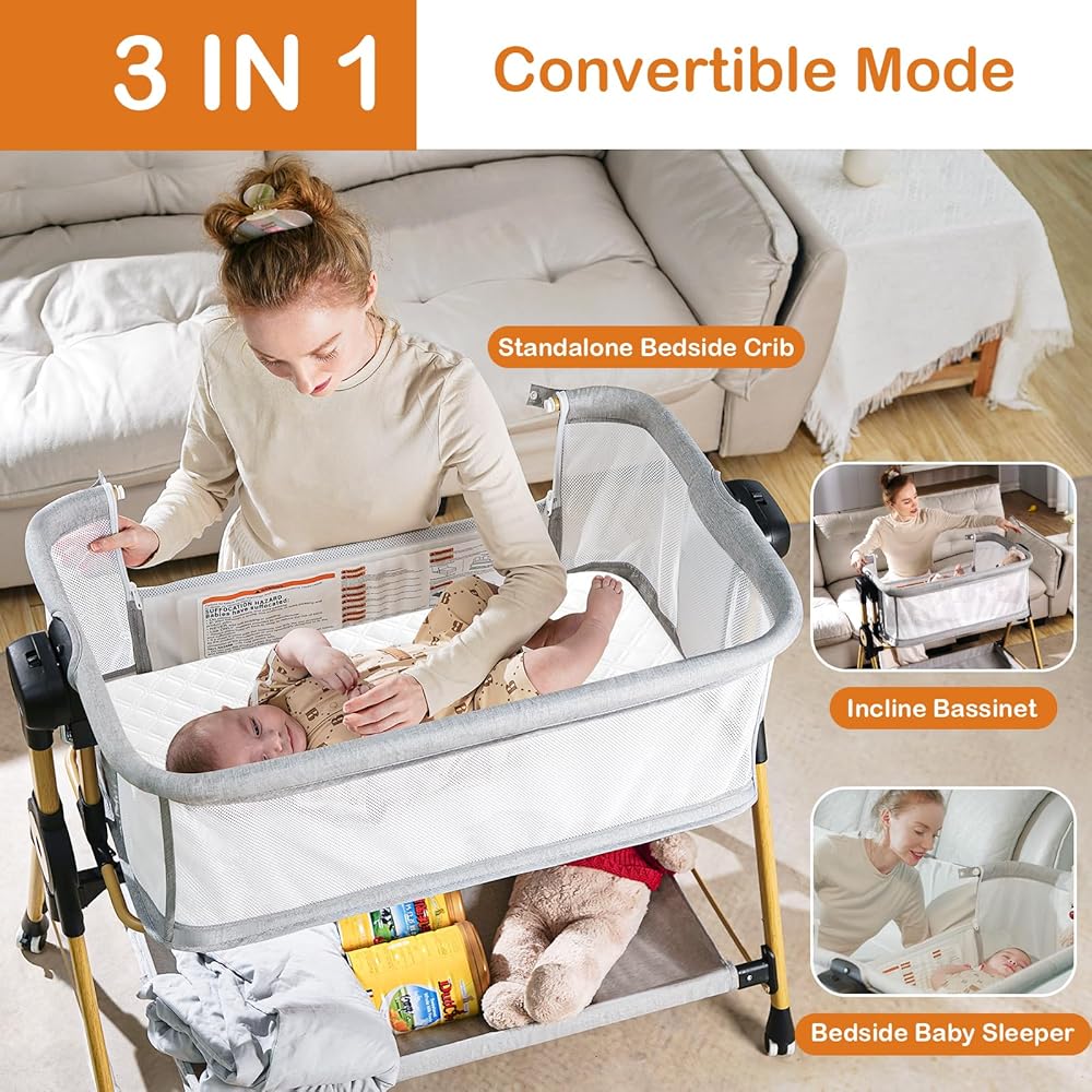 【3 في 1 BASTSINETS BASSSINETS Sleeper】 إنه باسينيت طفل متعدد الاستخدامات يعمل بمثابة نائم مشترك بجانب السرير ، والسرير الهزائم ، وسرير مستقل. يوفر Baby Bassinet المساحة والمال مع توفير المرونة لتلبية الاحتياجات المختلفة.