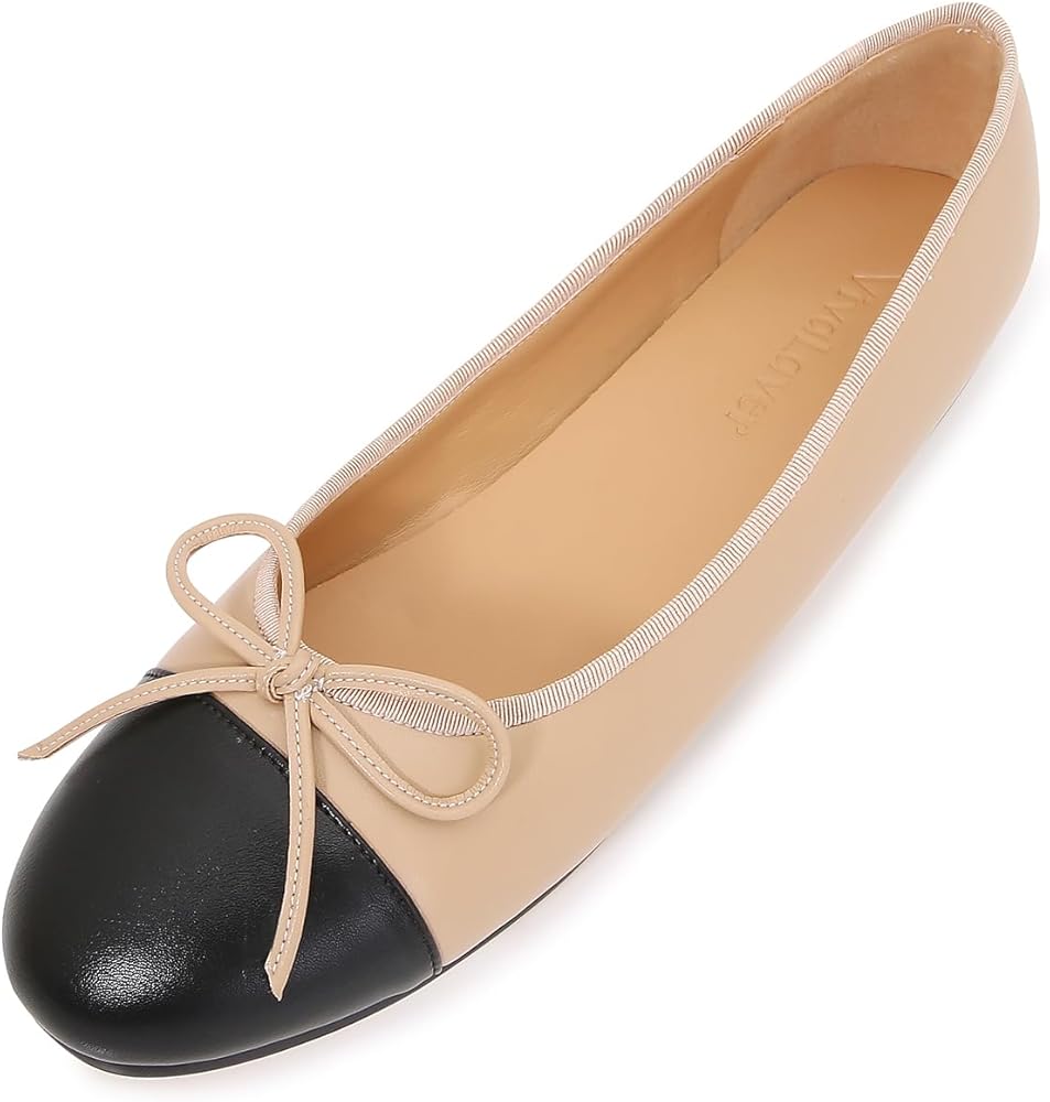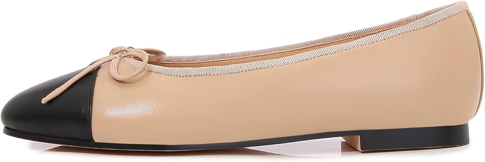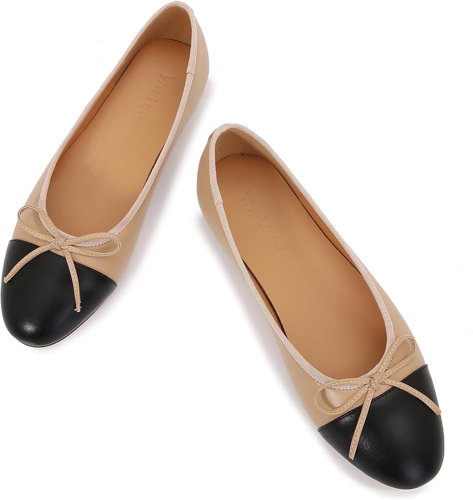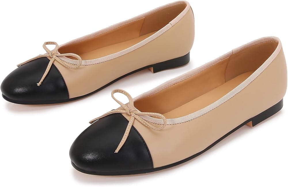 Chic and stylish: These Women's Cap Toe Ballet Flats feature a classic two-tone design and an elegant bow embellishment that adds a touch of sophistication to any outfit.