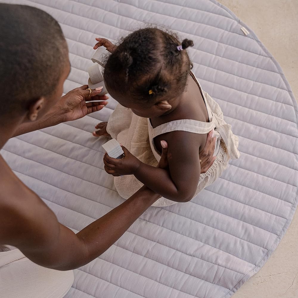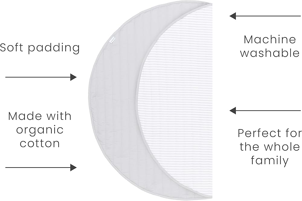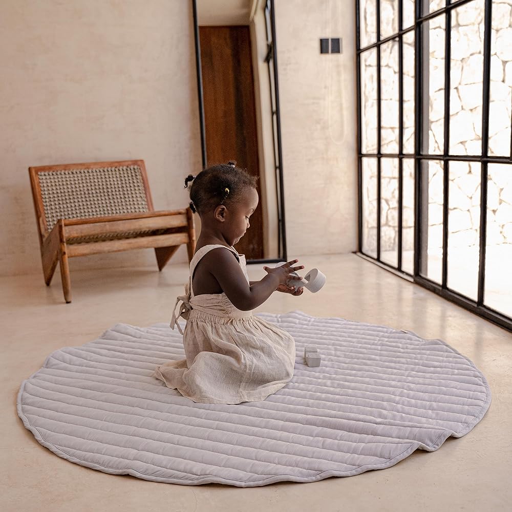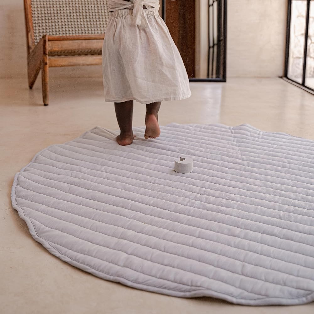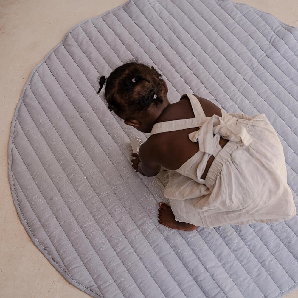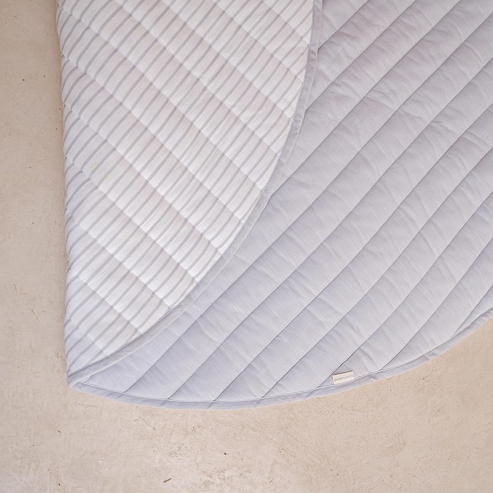 Toddlekind Organic Cotton Play Play Mat - 48 "بطانية مصنوعة يدويًا لأنشطة الأرضية ، ووقت البطن ، وديكور الحضانة ، وراحة الأسرة 0M+ Stone Stripes (رمادي)