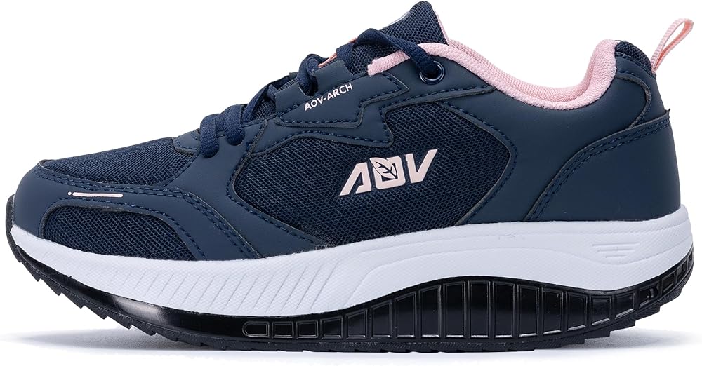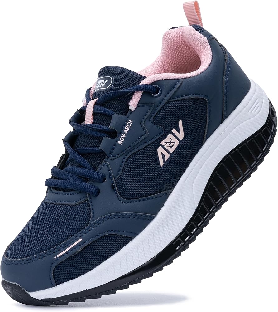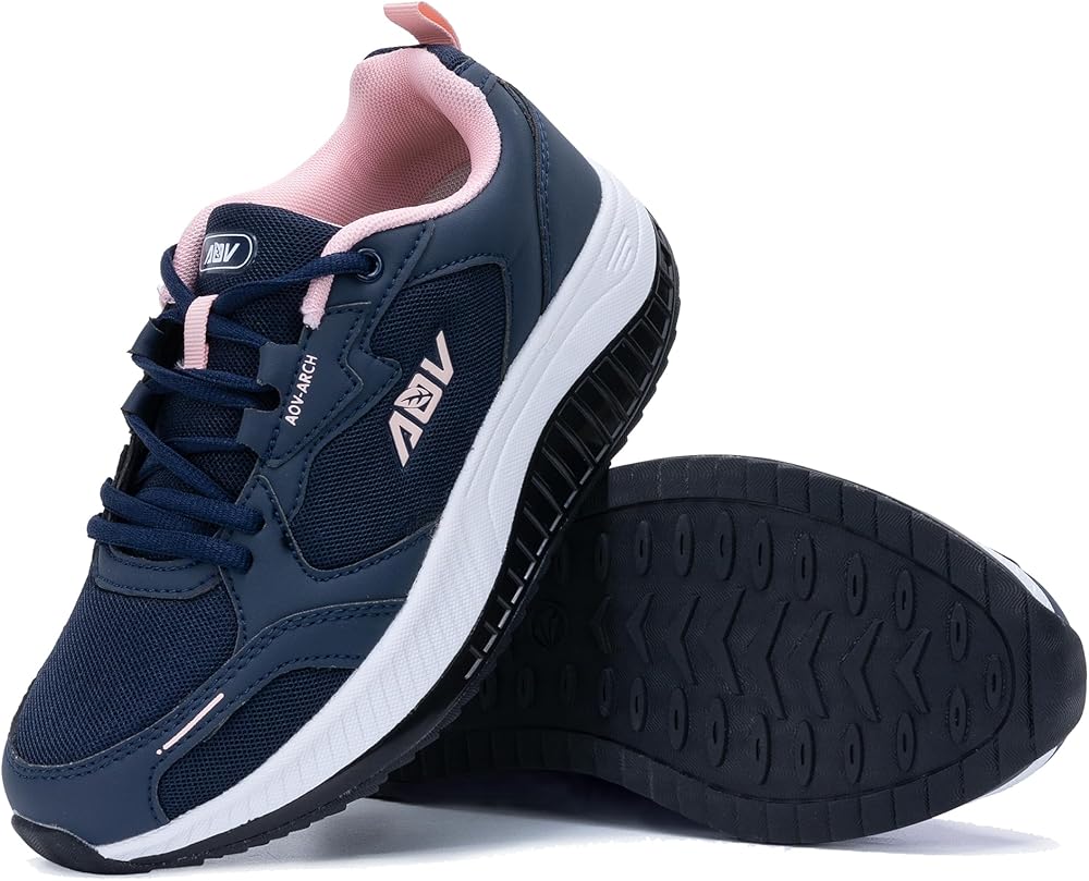 أحذية المشي النسائية AOV مع دعم القوس أخمصي التهاب اللفافة العظوية أحذية رياضية منصة أزياء التنس أحذية bluepink الحجم 6