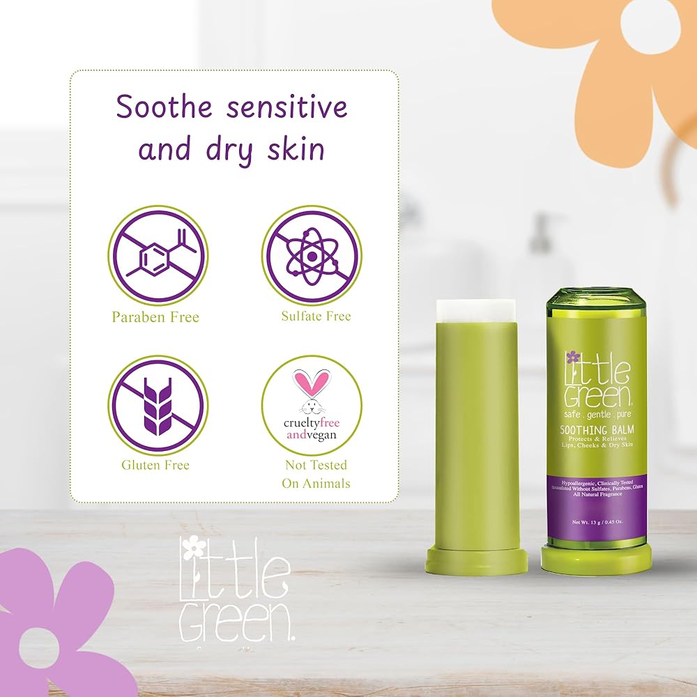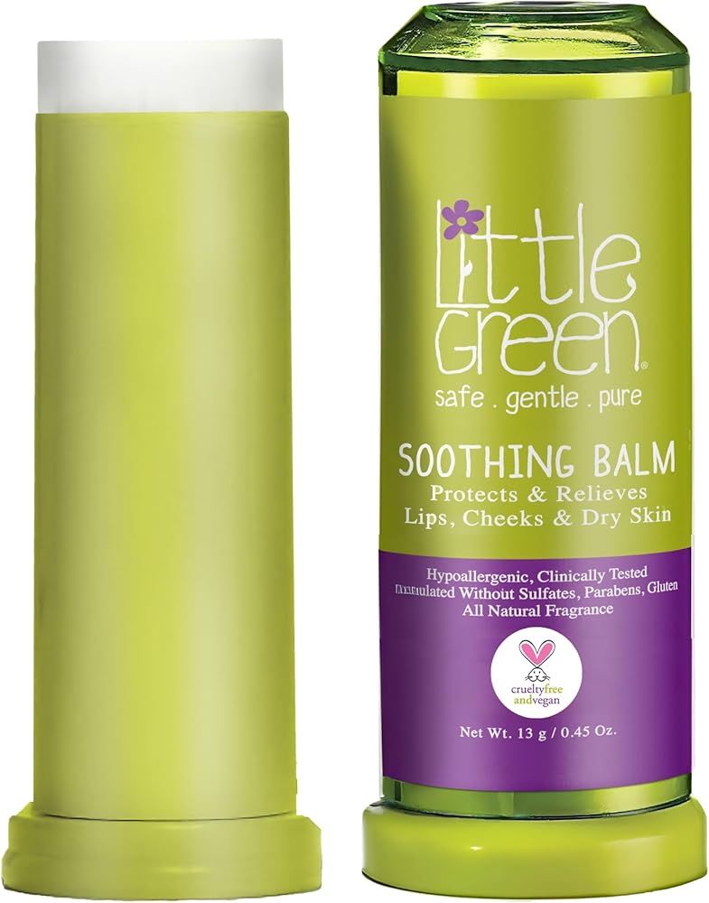 بلسم خضراء صغيرة مهدئة ، بلسم مرطب للطفل والأطفال المشقوقة الشفاه والخدين والبشرة الجافة