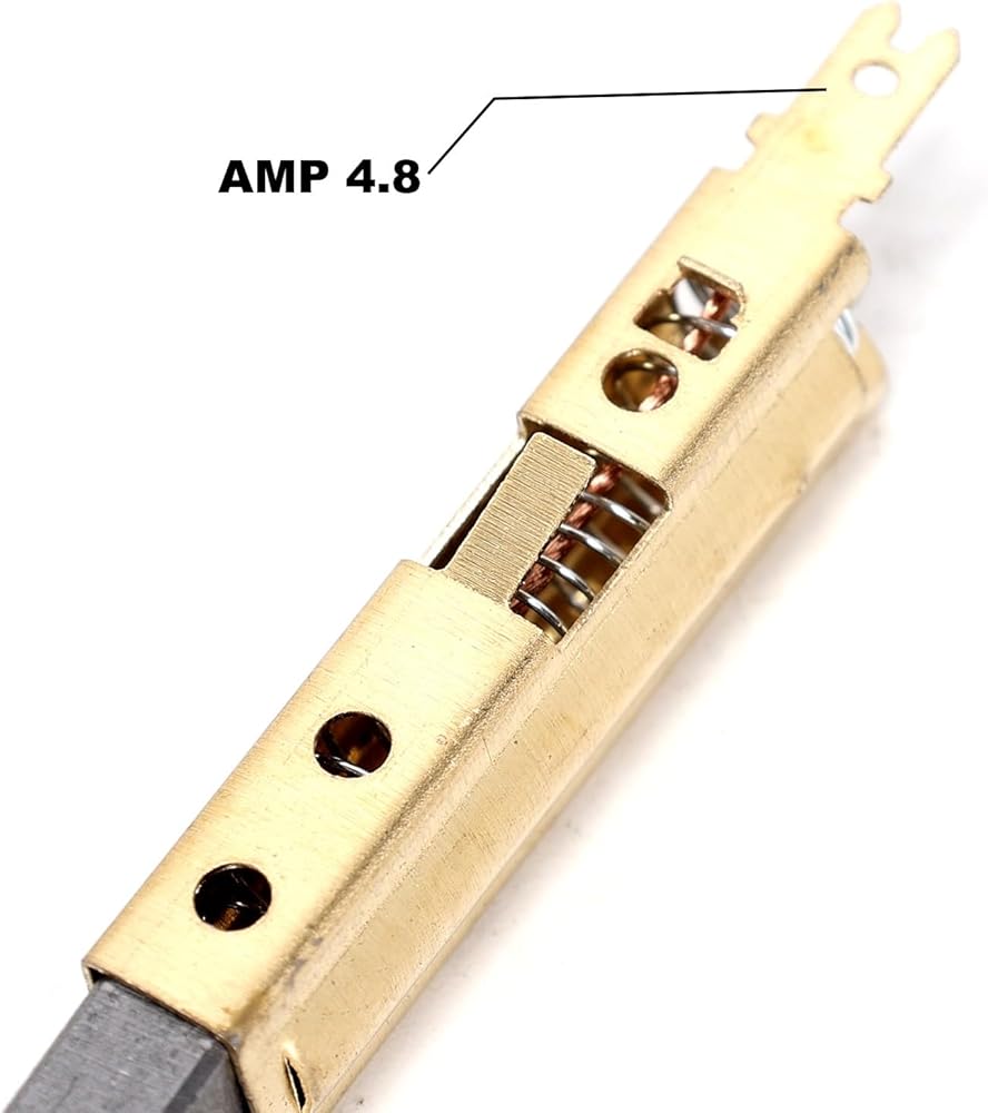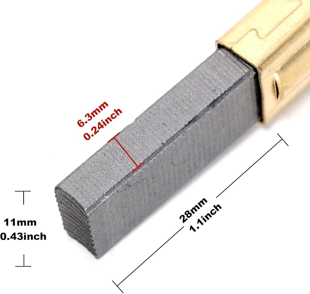 3.Carbon brush size: 11mm x 6.3mm x 28mm / 0.43inch x 0.24inch x 1.1inch, 4.8mm AMP plug connection; Copper material has good conductivity and can repair intermittent motor failures.