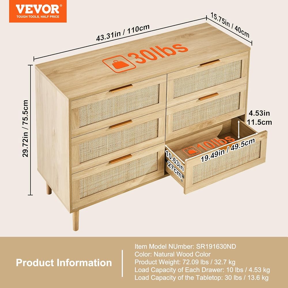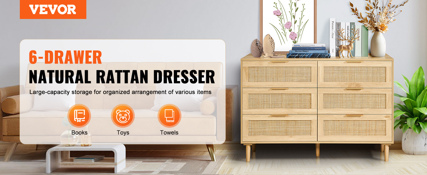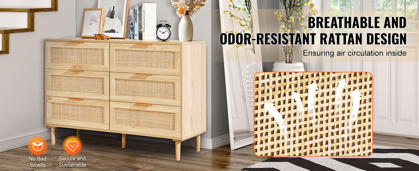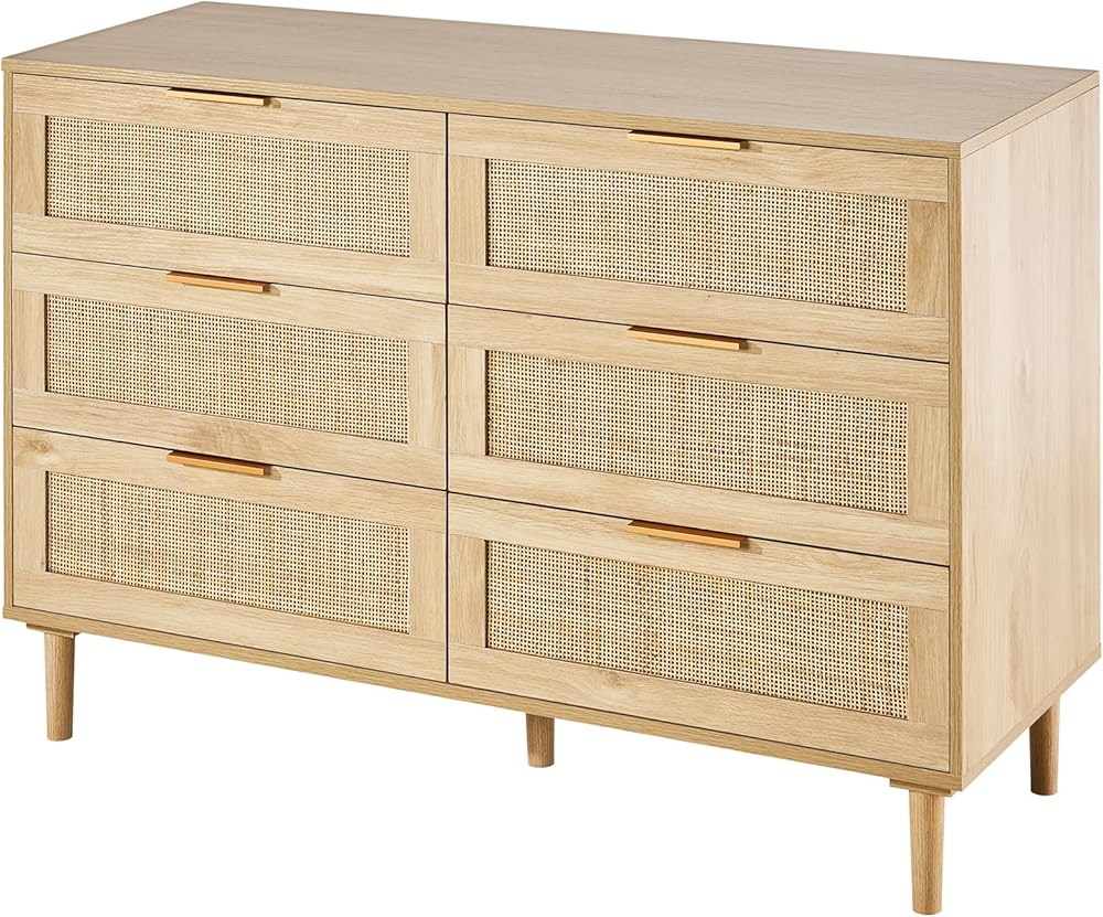 Sturdy & Smooth: هذا Dritan Rattan Dresser 6 درج مستقر وأنيق ومصمم مع خشب عالي الجودة وأرجل قوية. تقلبات المعادن على كل درج تجعل الفتح وإغلاق نسيم - هادئ وبدون مجهود!